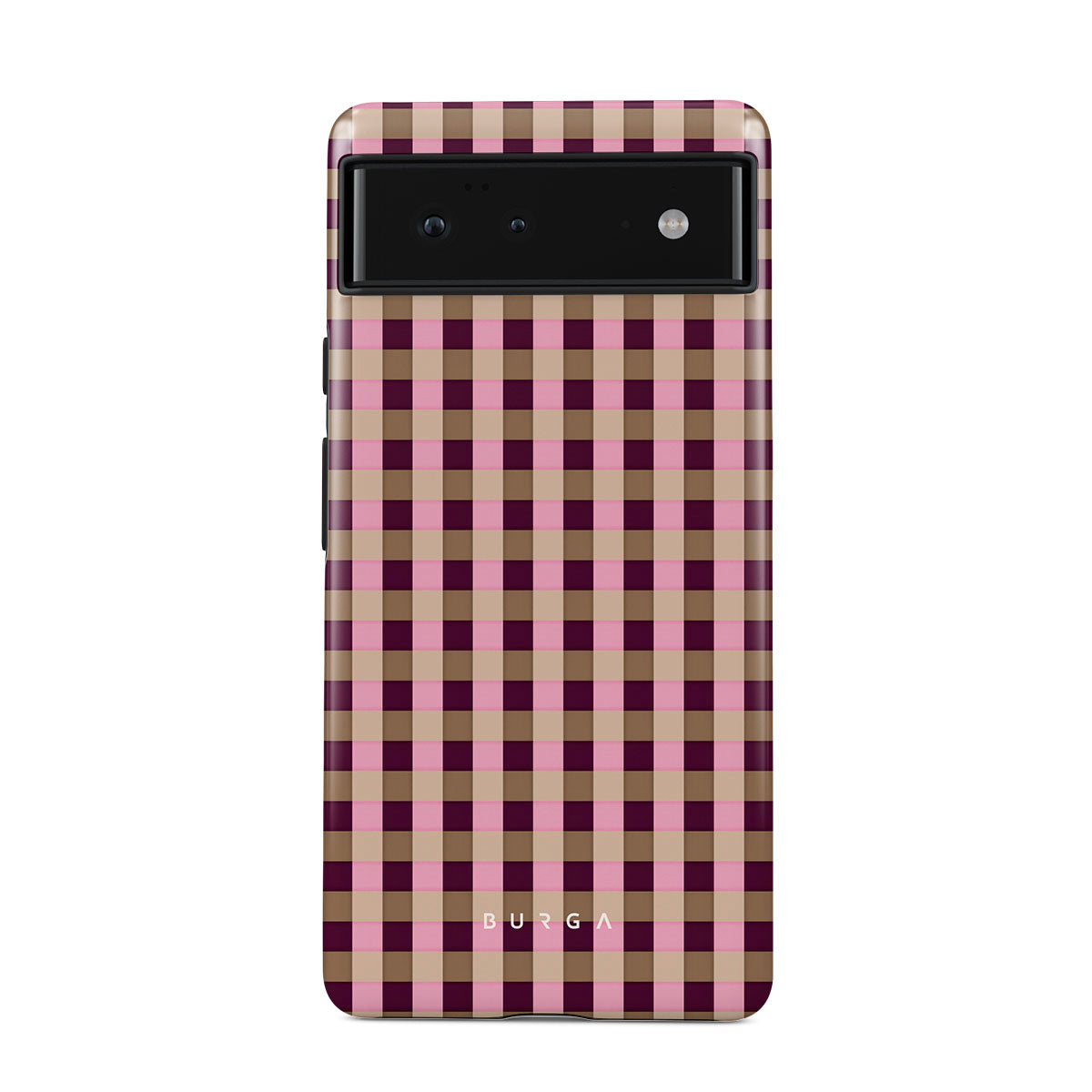 En este diseño: un patrón de cuadros rosa y burdeos en estilo moderno.