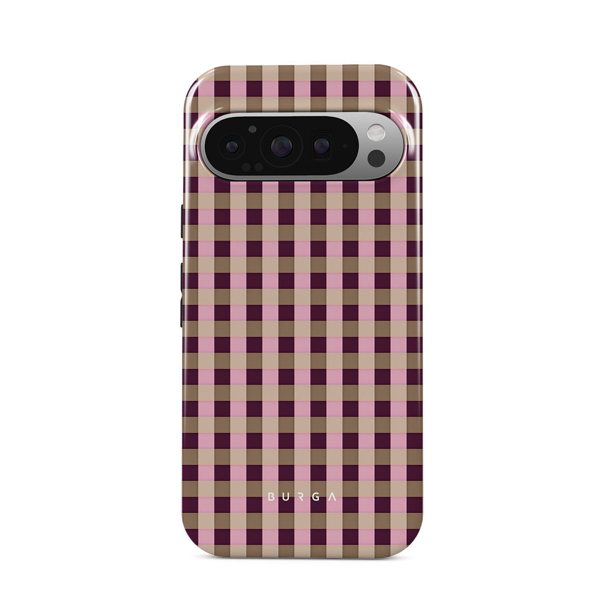 En este diseño: un patrón de cuadros rosa y burdeos en estilo moderno.