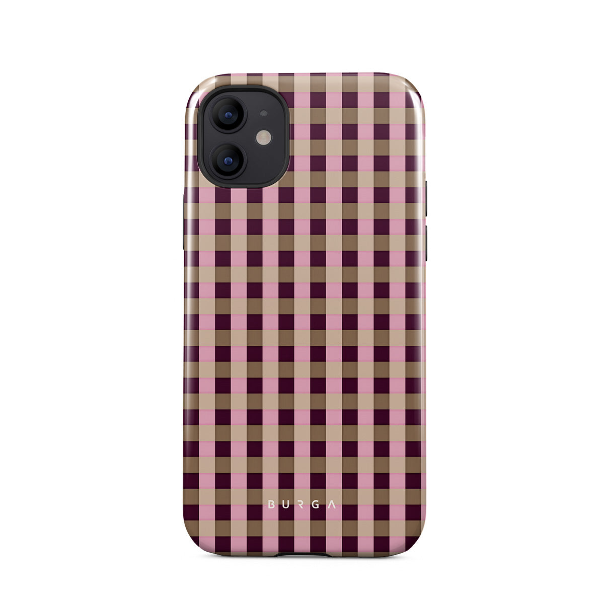En este diseño: un patrón de cuadros rosa y burdeos en estilo moderno.