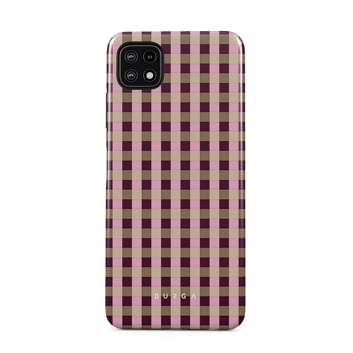 En este diseño: un patrón de cuadros rosa y burdeos en estilo moderno.