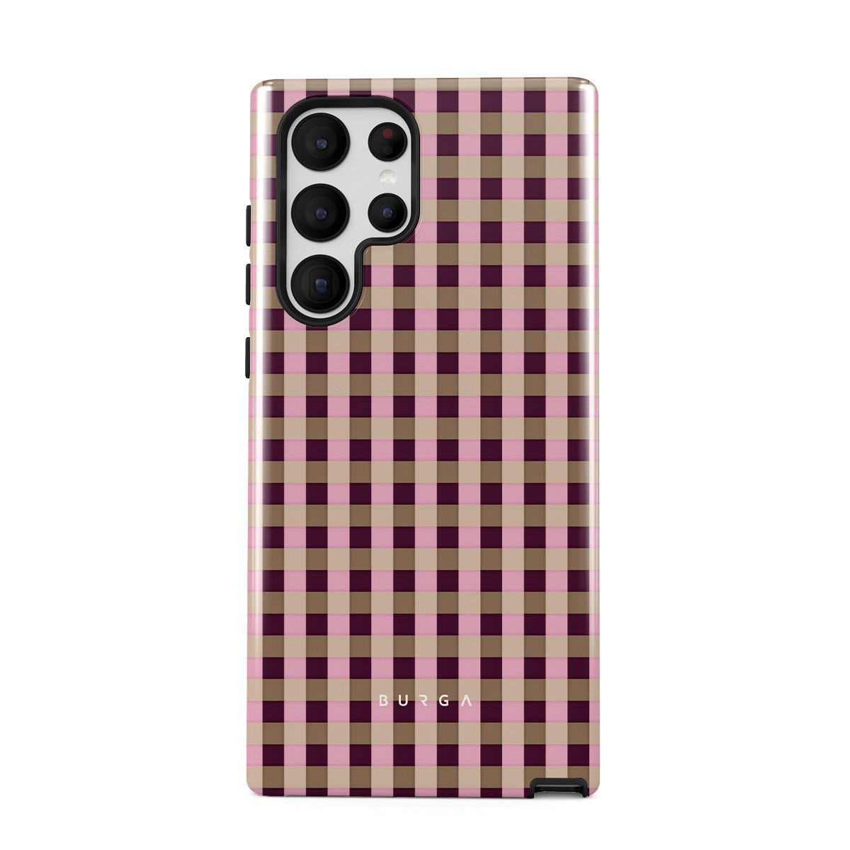 En este diseño: un patrón de cuadros rosa y burdeos en estilo moderno.