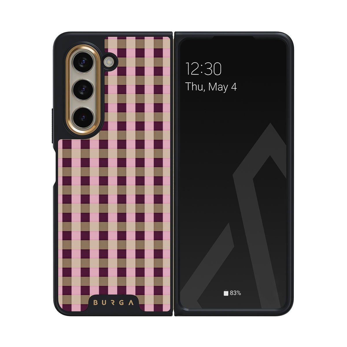 En este diseño: un patrón de cuadros rosa y burdeos en estilo moderno.