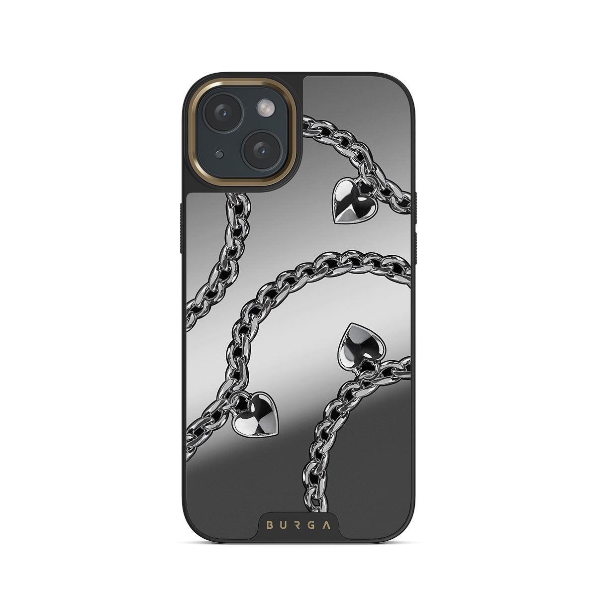 En este diseño: cadenas, corazones, plata, detalles metálicos, espejo.