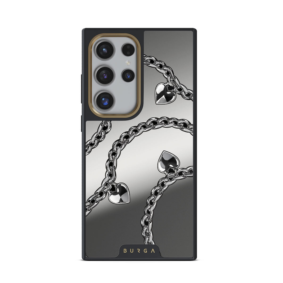 En este diseño: cadenas, corazones, plata, detalles metálicos, espejo.