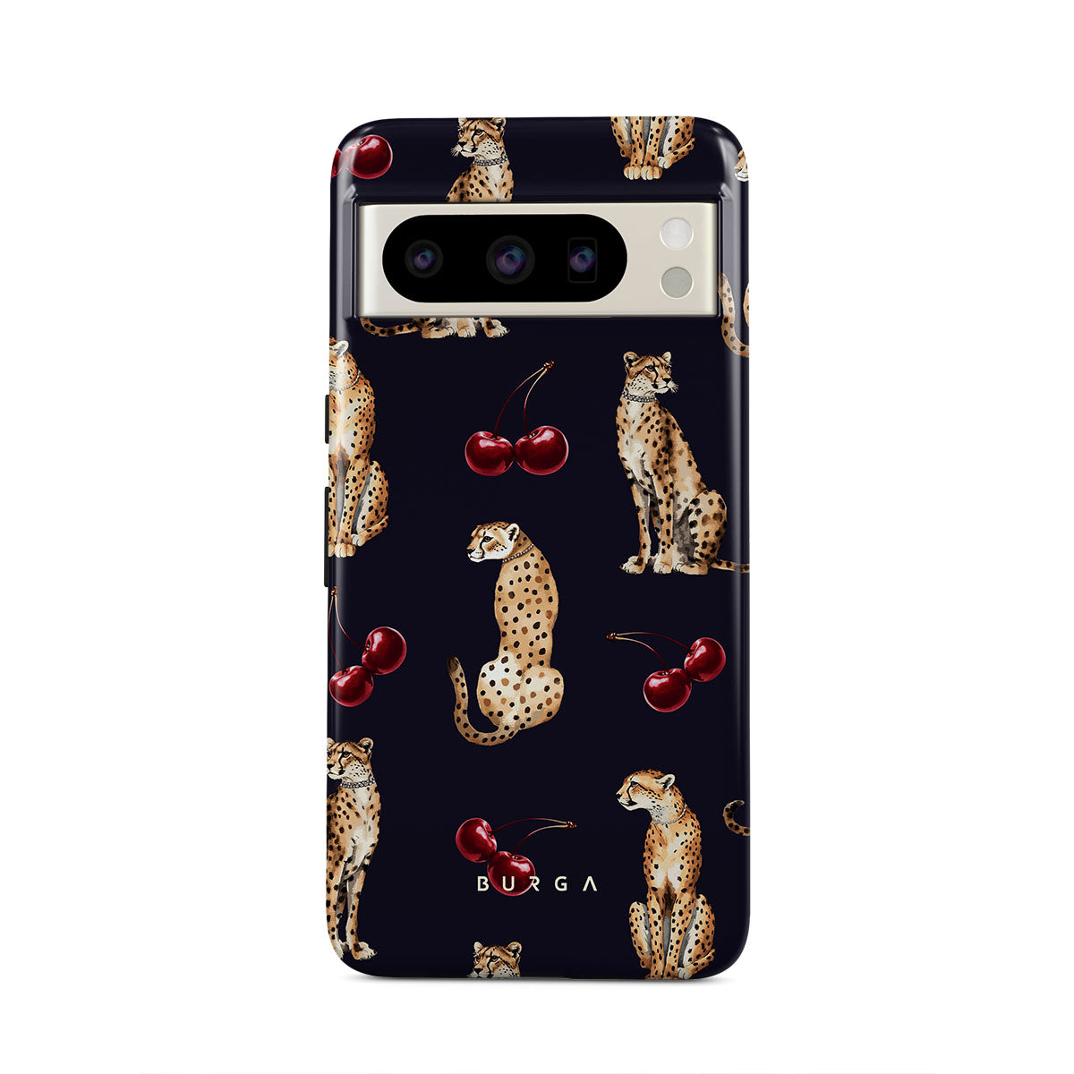 Este diseño presenta: estampado de leopardo, leopardos, cerezas.