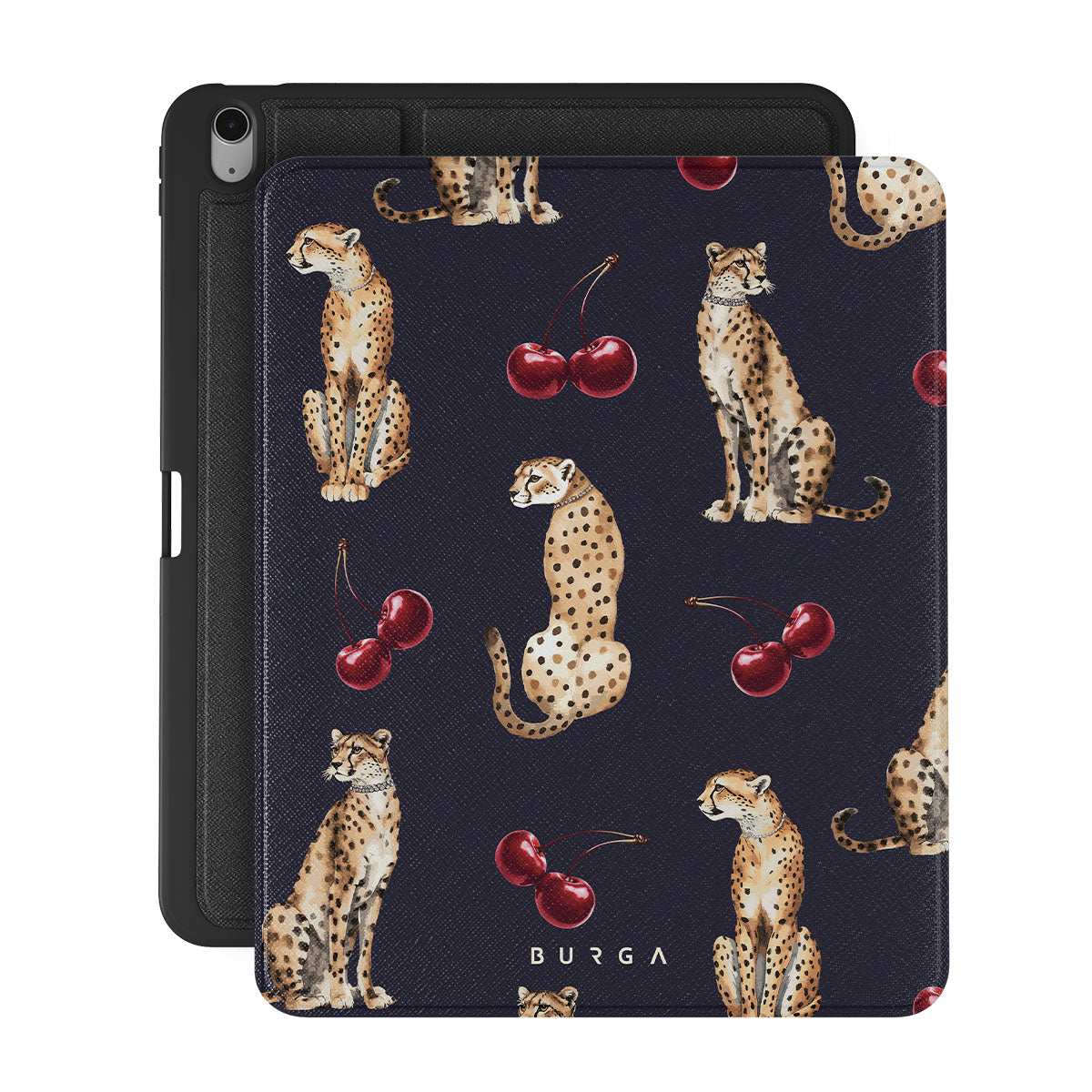Este diseño presenta: estampado de leopardo, leopardos, cerezas.