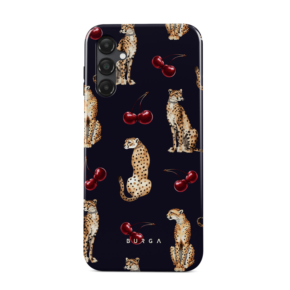 Este diseño presenta: estampado de leopardo, leopardos, cerezas.
