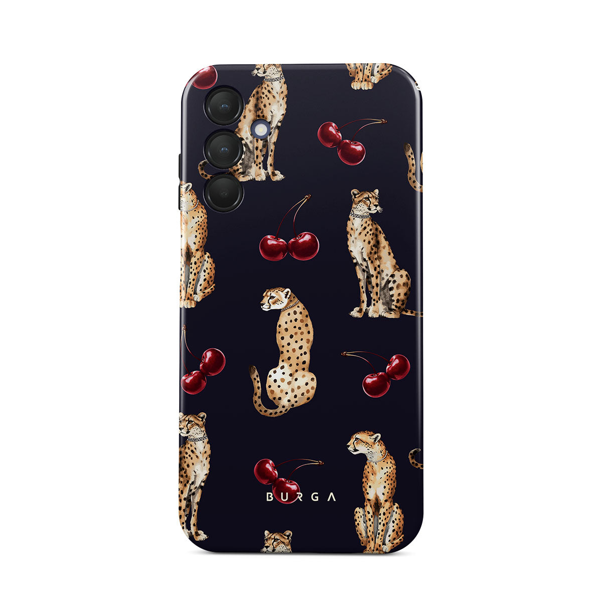 Este diseño presenta: estampado de leopardo, leopardos, cerezas.