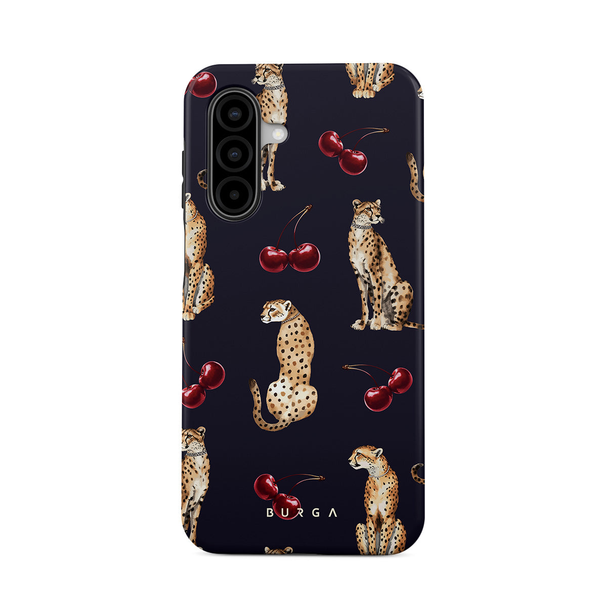 Este diseño presenta: estampado de leopardo, leopardos, cerezas.
