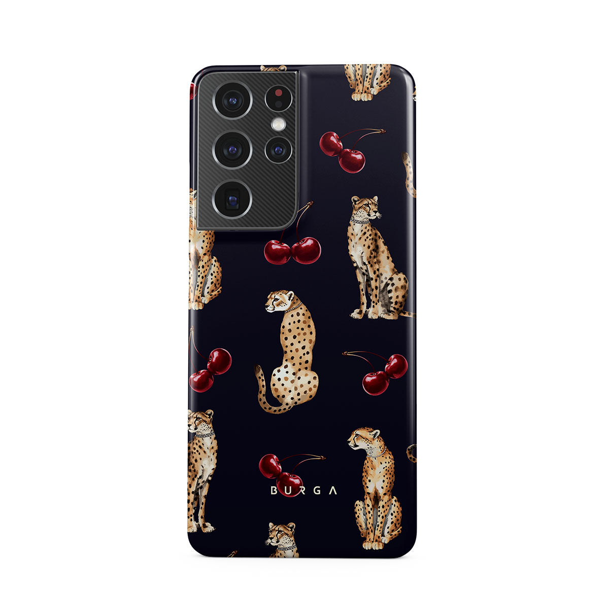 Este diseño presenta: estampado de leopardo, leopardos, cerezas.