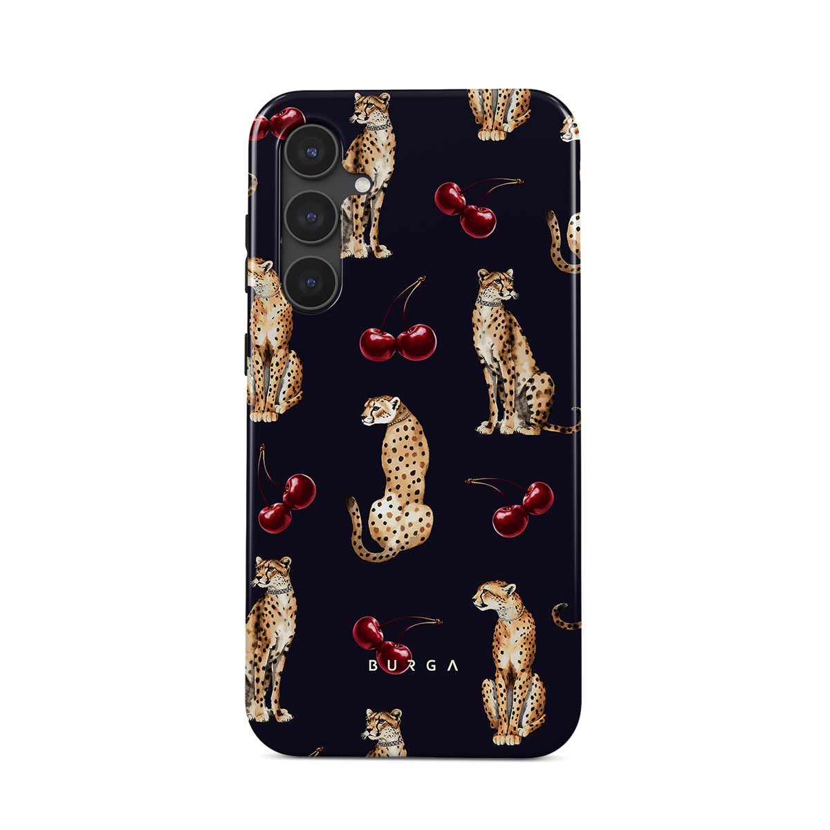 Este diseño presenta: estampado de leopardo, leopardos, cerezas.