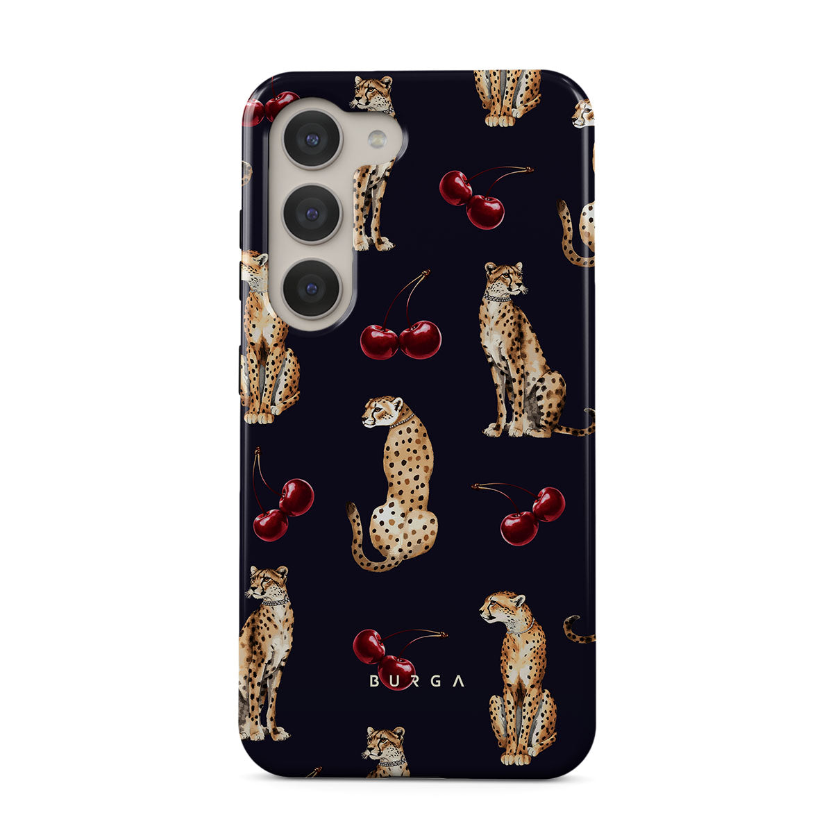 Este diseño presenta: estampado de leopardo, leopardos, cerezas.