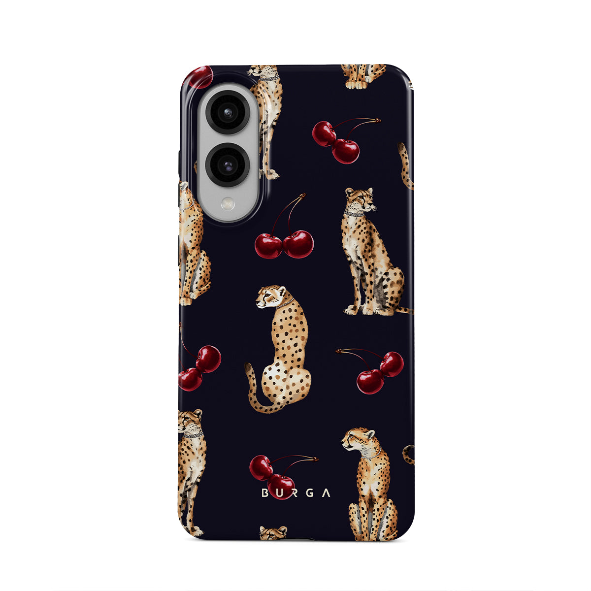 Este diseño presenta: estampado de leopardo, leopardos, cerezas.
