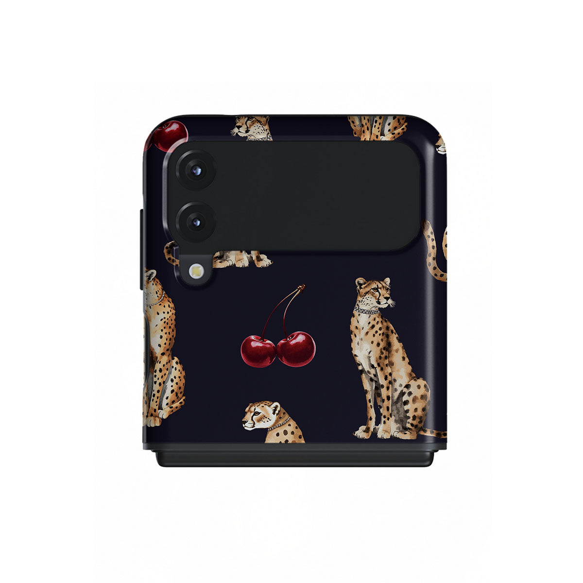 Este diseño presenta: estampado de leopardo, leopardos, cerezas.