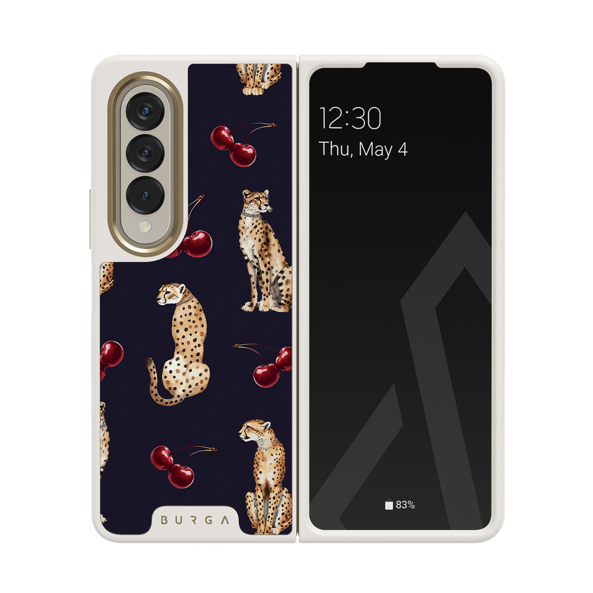 Este diseño presenta: estampado de leopardo, leopardos, cerezas.