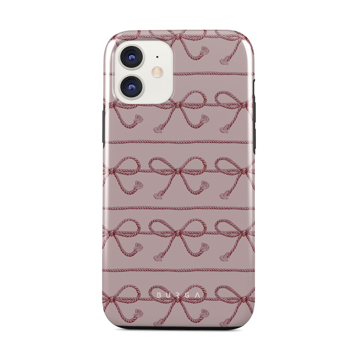 En este diseño: moños rosas, fondo rosa, cuerdas, estampado divertido.