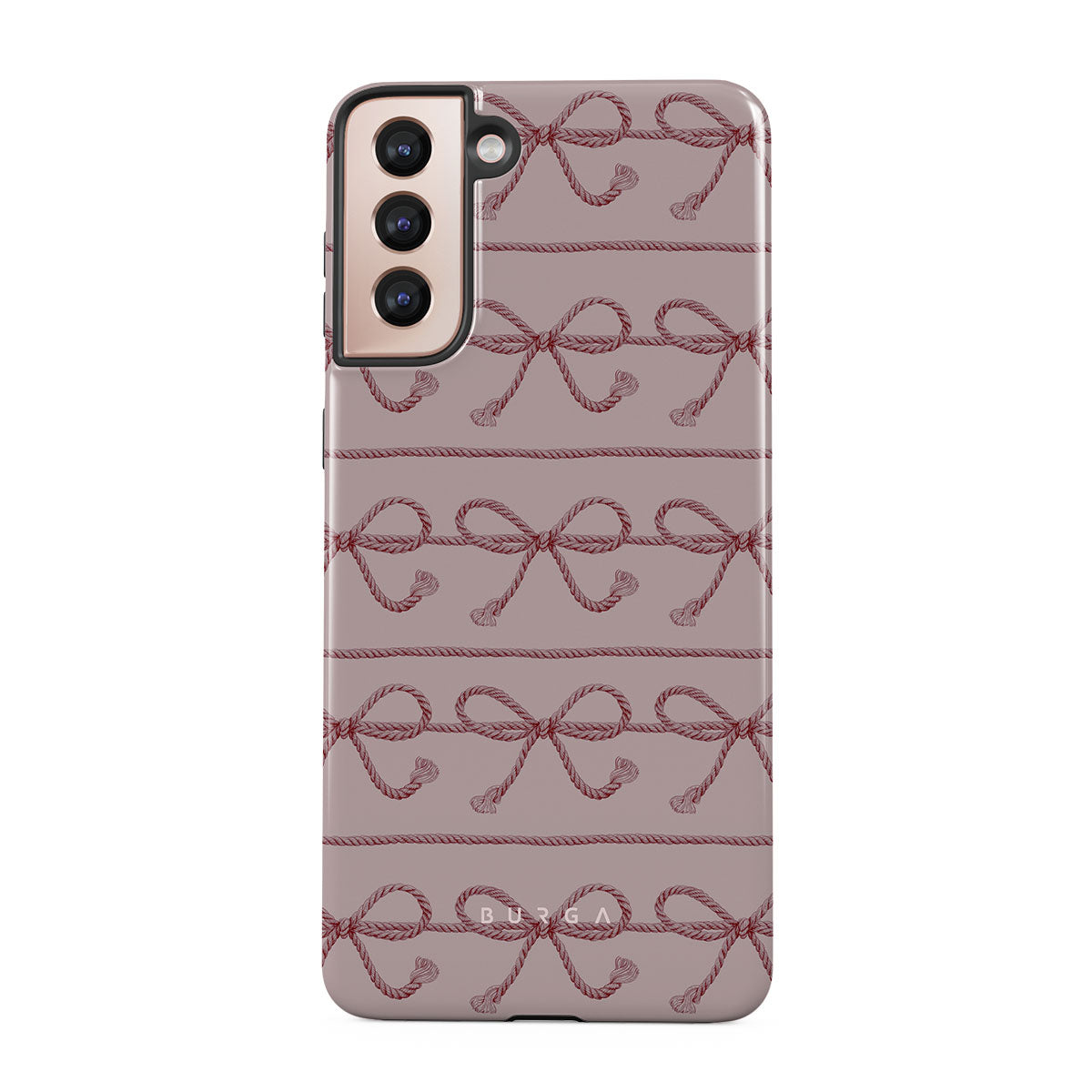 En este diseño: moños rosas, fondo rosa, cuerdas, estampado divertido.