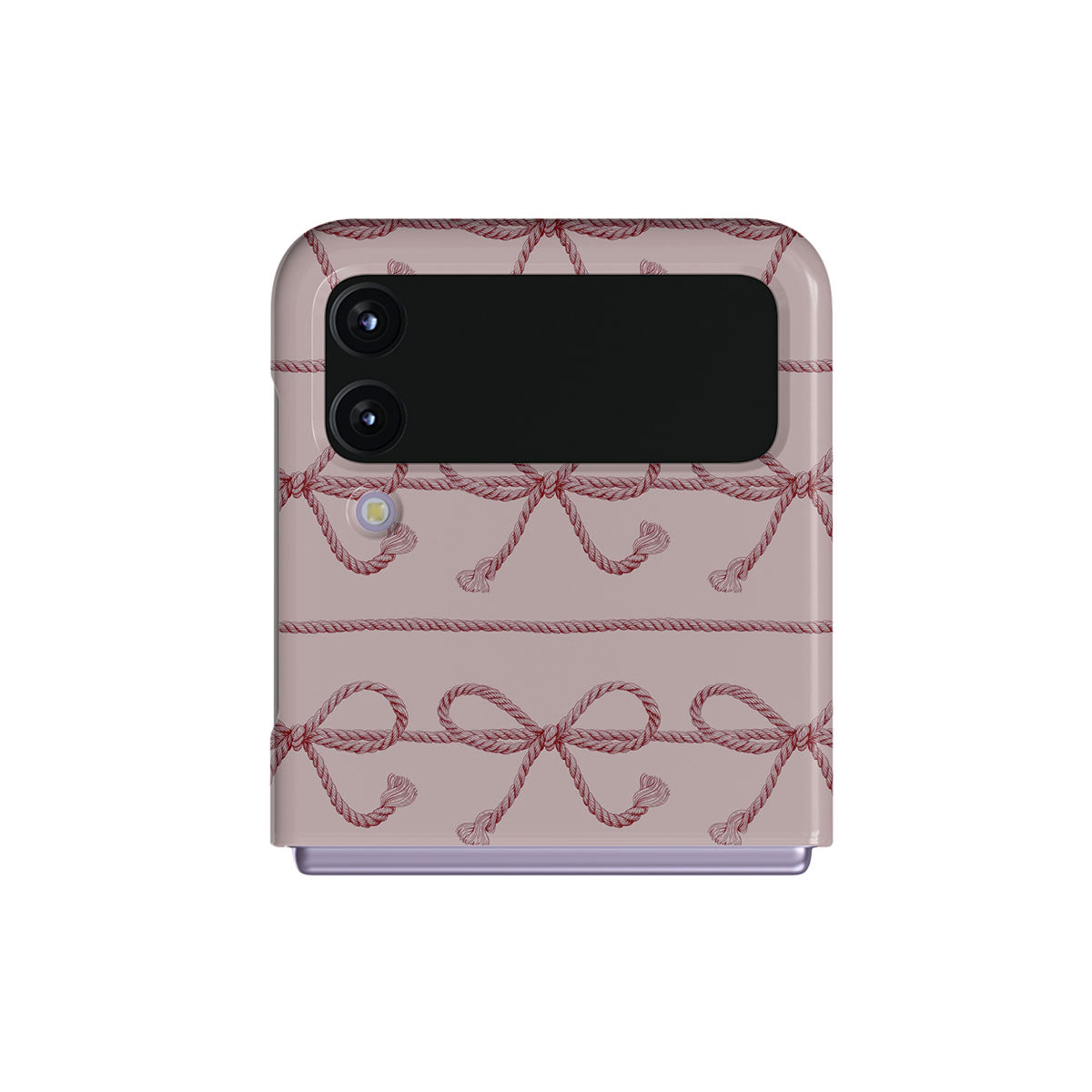 En este diseño: moños rosas, fondo rosa, cuerdas, estampado divertido.