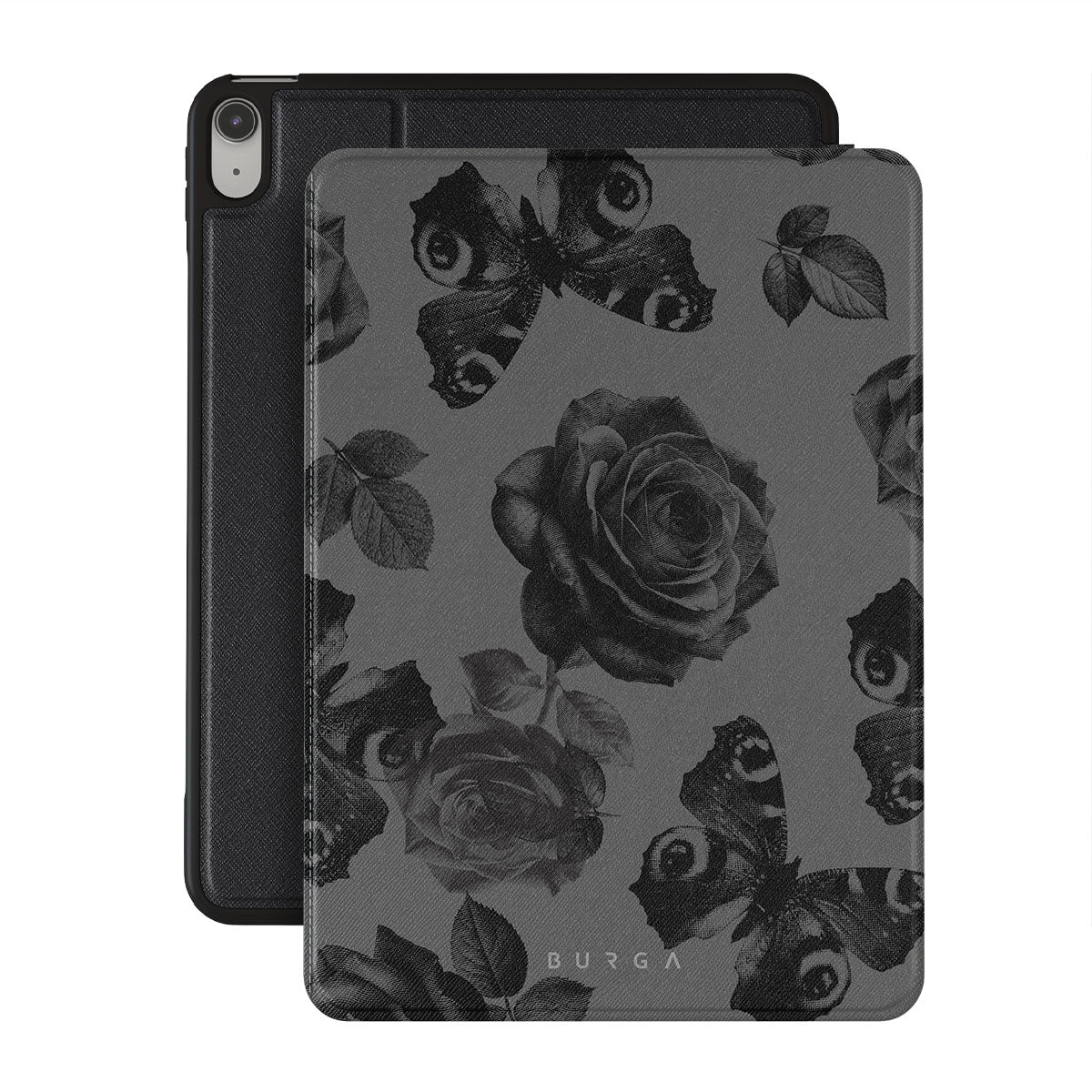 En este diseño: rosas negras, flores góticas, sombras tenebrosas.