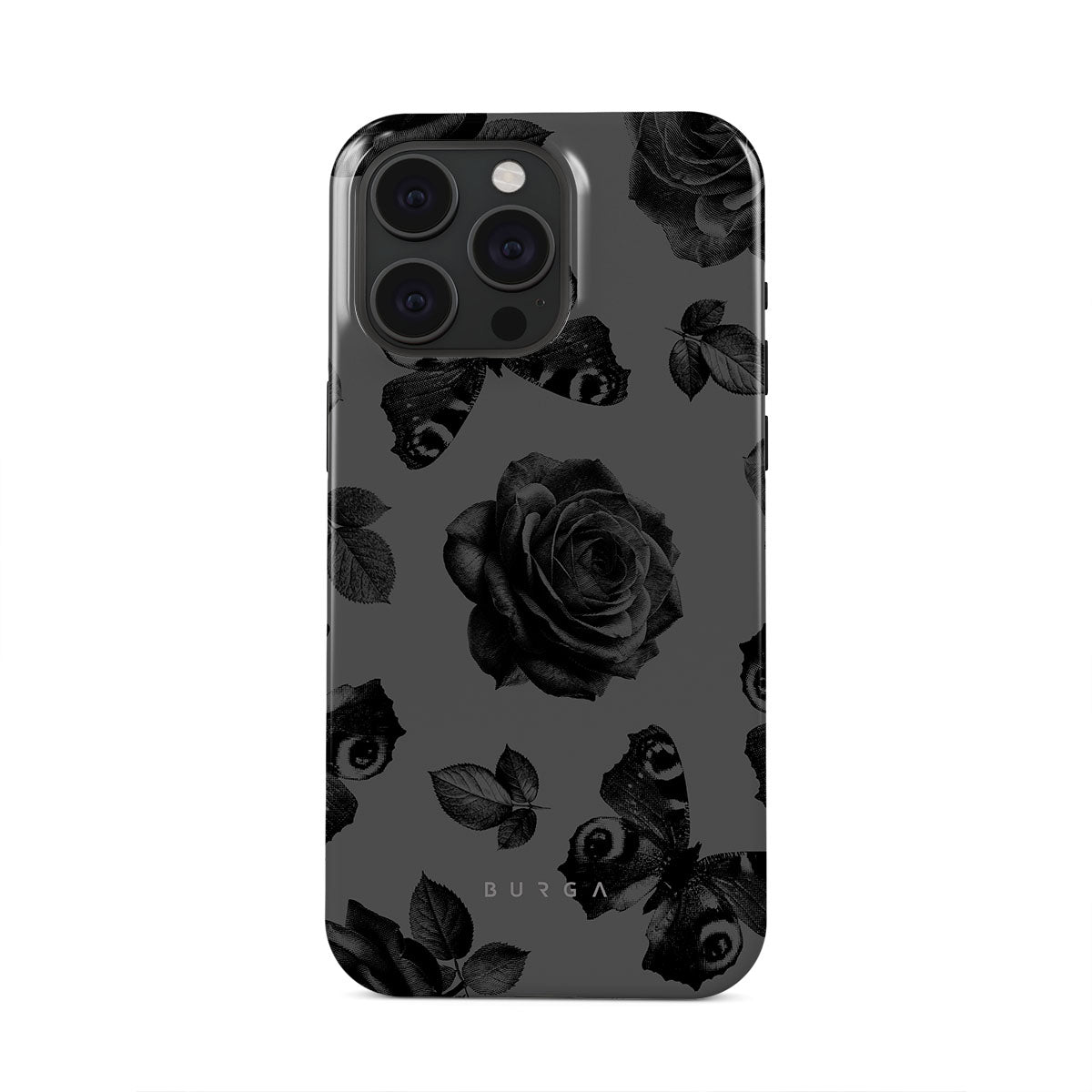 En este diseño: rosas negras, flores góticas, sombras tenebrosas.