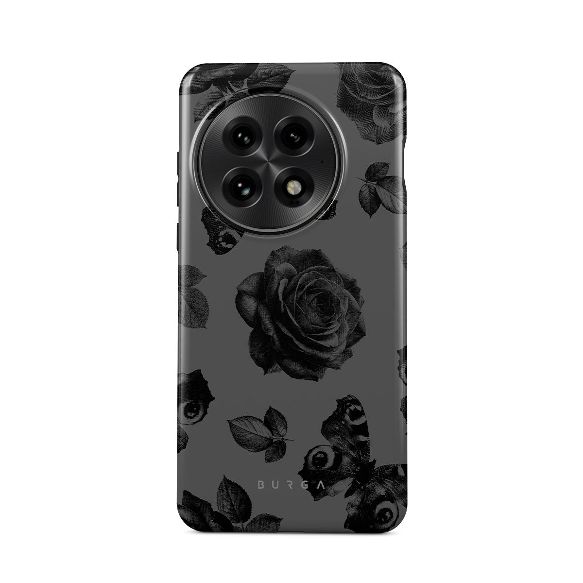 En este diseño: rosas negras, flores góticas, sombras tenebrosas.