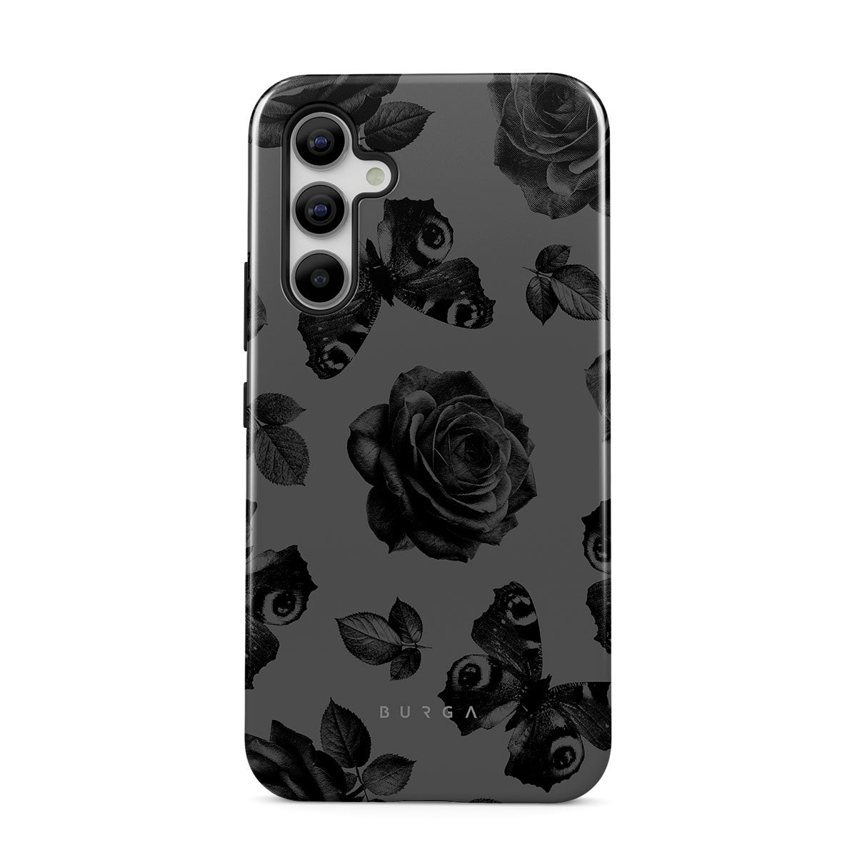 En este diseño: rosas negras, flores góticas, sombras tenebrosas.