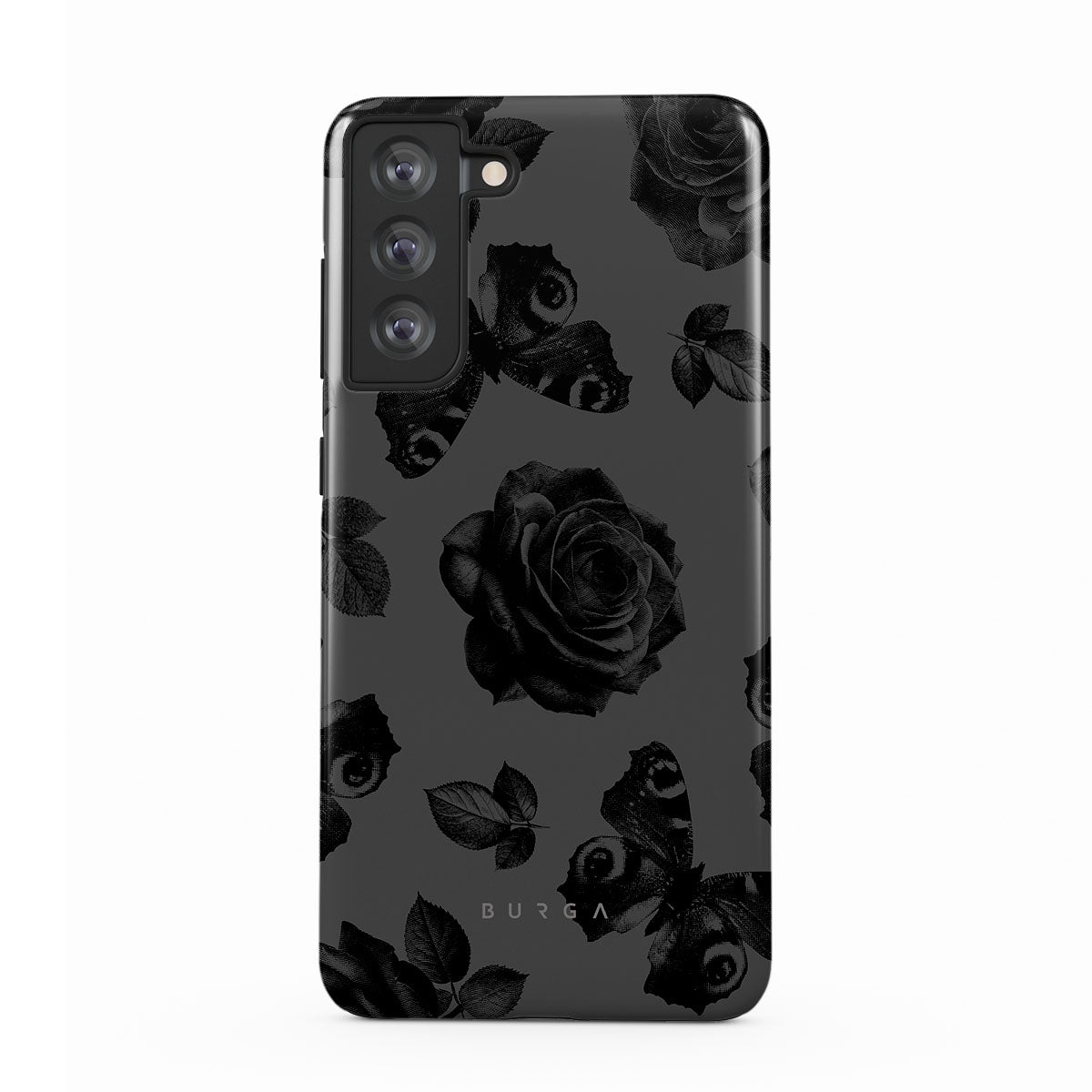 En este diseño: rosas negras, flores góticas, sombras tenebrosas.