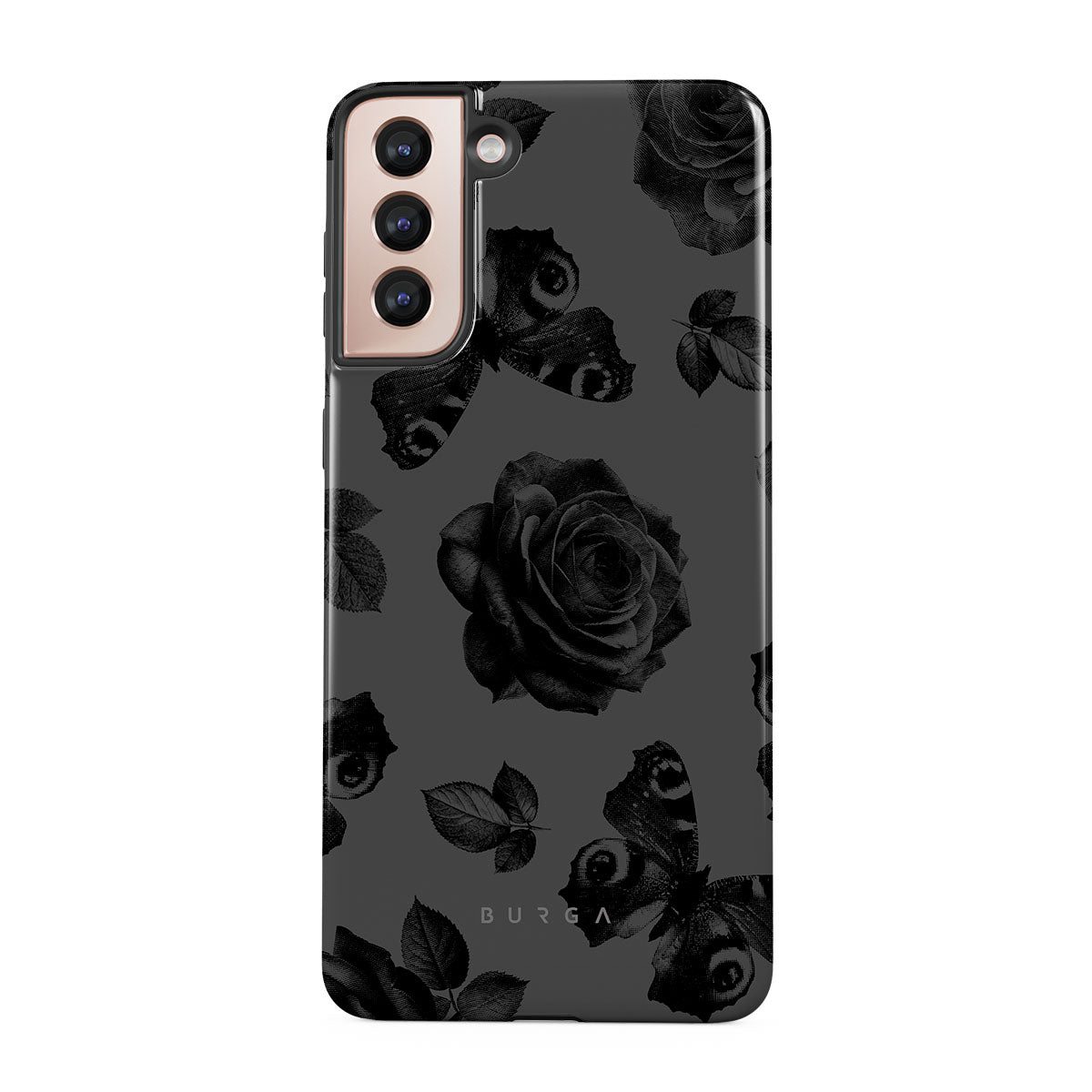 En este diseño: rosas negras, flores góticas, sombras tenebrosas.