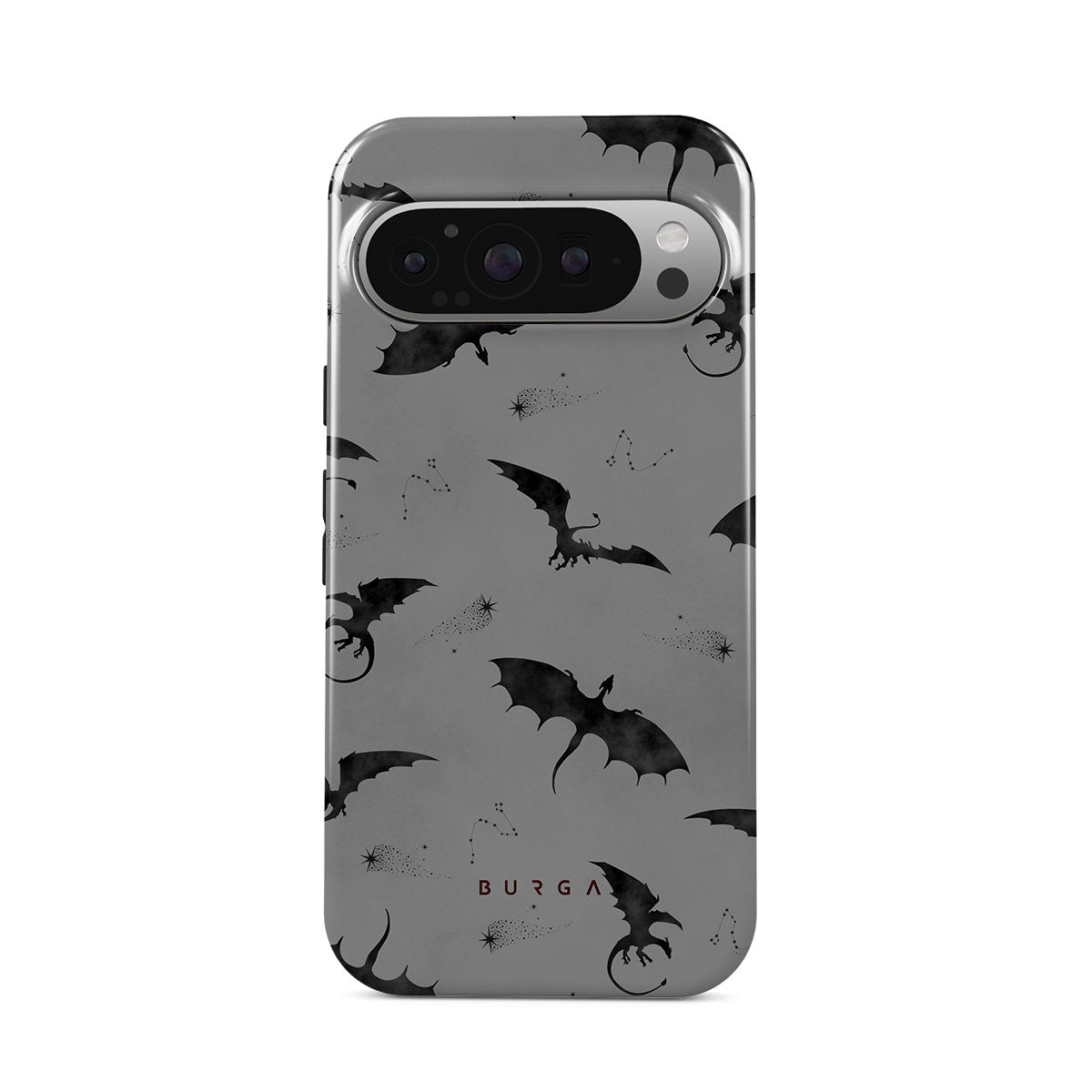 En este diseño: murciélagos, dragones, cielo gris, cielos nocturnos, criaturas siniestras.