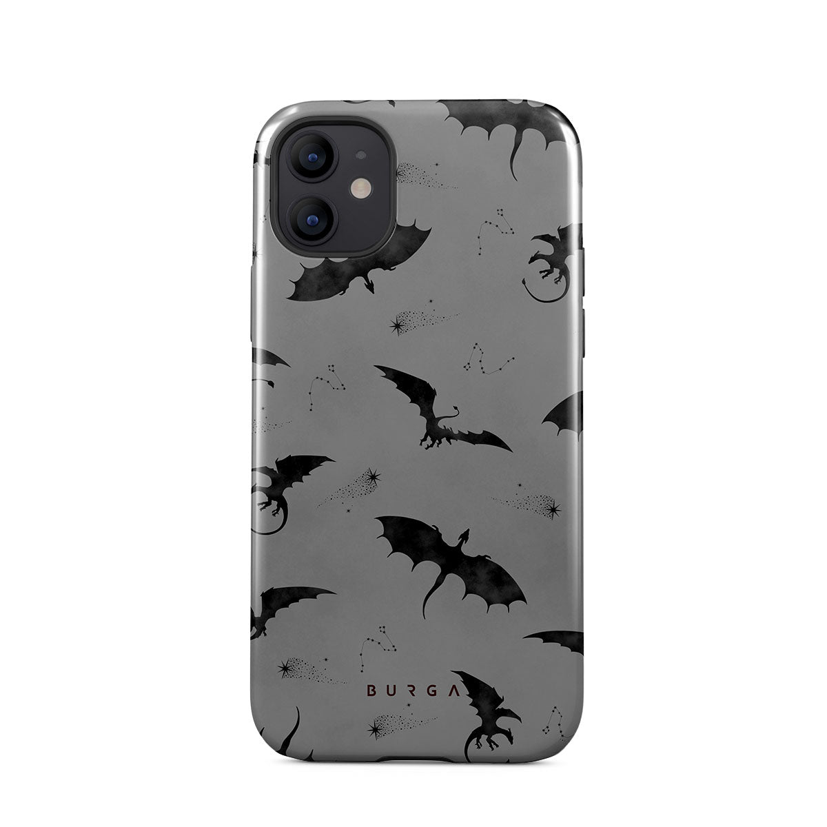 En este diseño: murciélagos, dragones, cielo gris, cielos nocturnos, criaturas siniestras.
