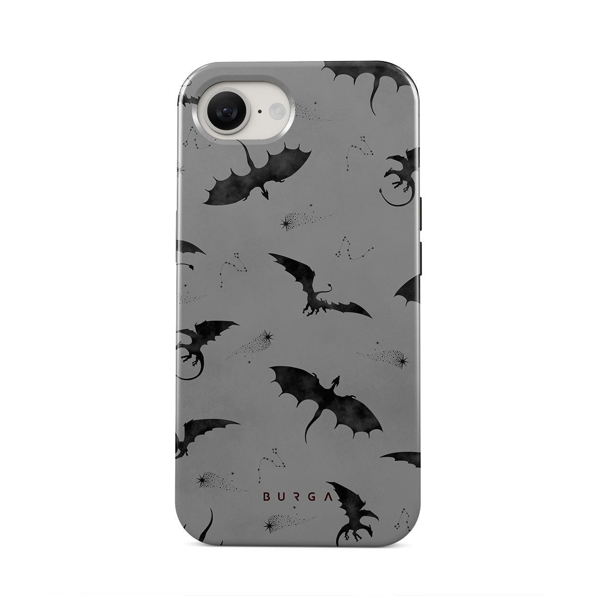 En este diseño: murciélagos, dragones, cielo gris, cielos nocturnos, criaturas siniestras.