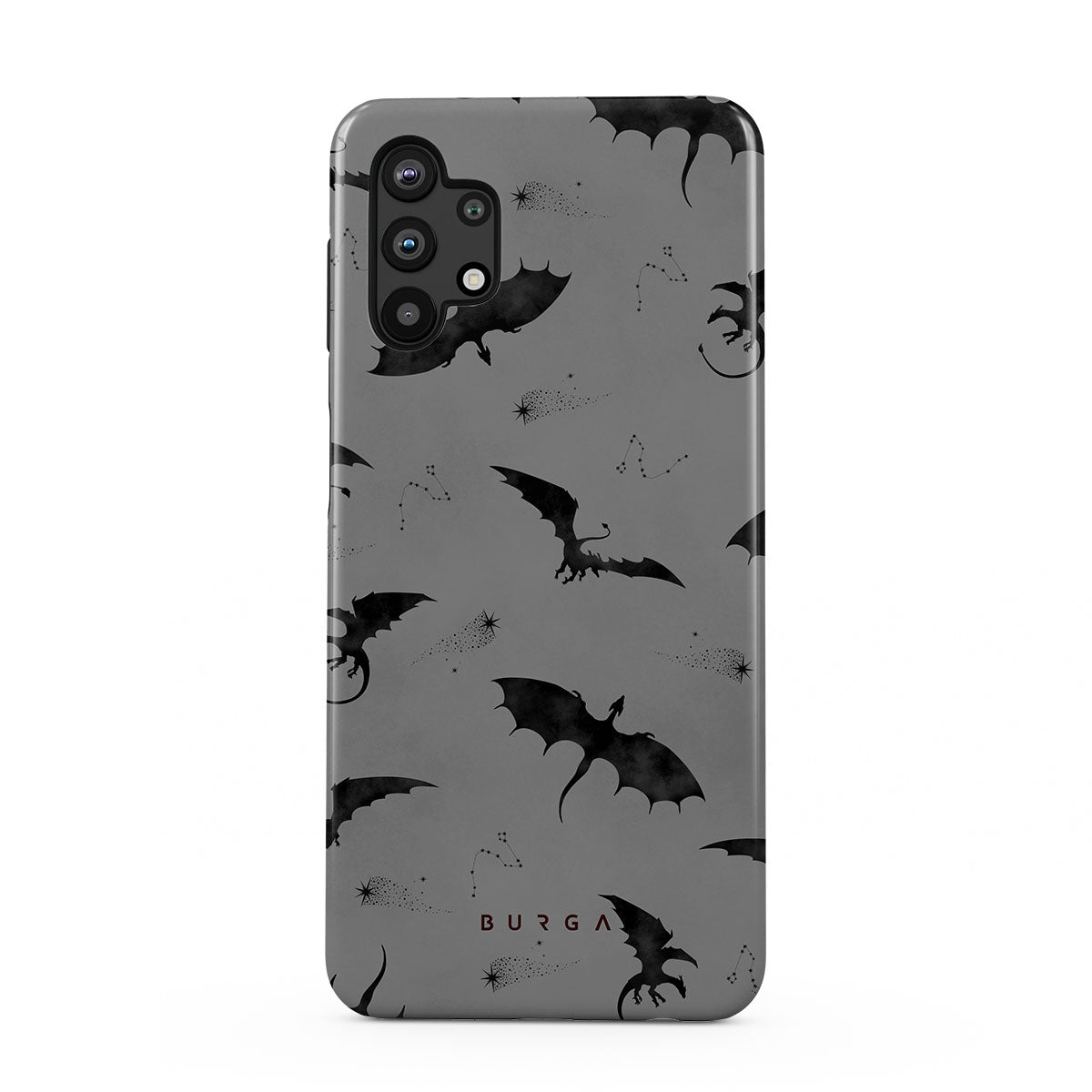 En este diseño: murciélagos, dragones, cielo gris, cielos nocturnos, criaturas siniestras.