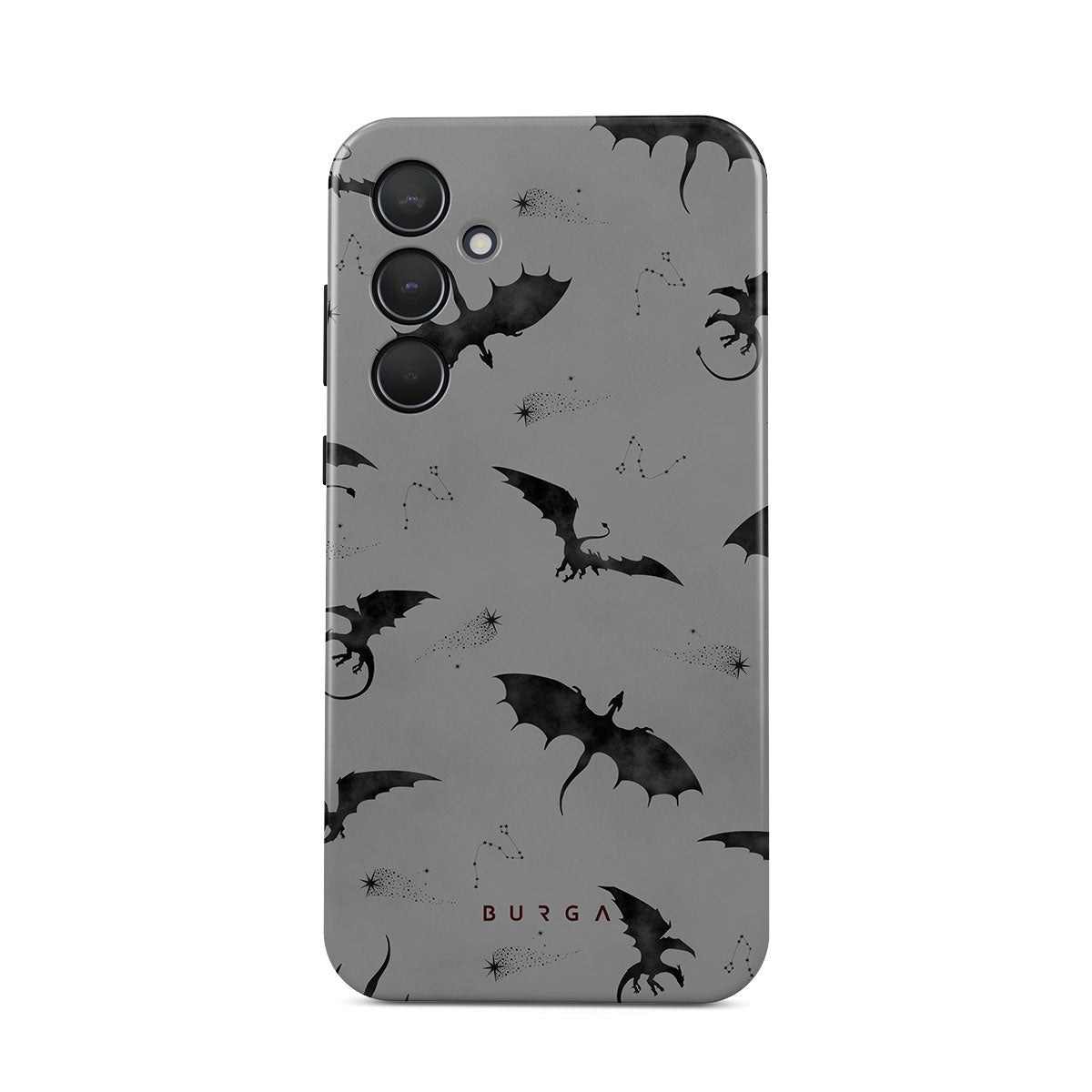 En este diseño: murciélagos, dragones, cielo gris, cielos nocturnos, criaturas siniestras.