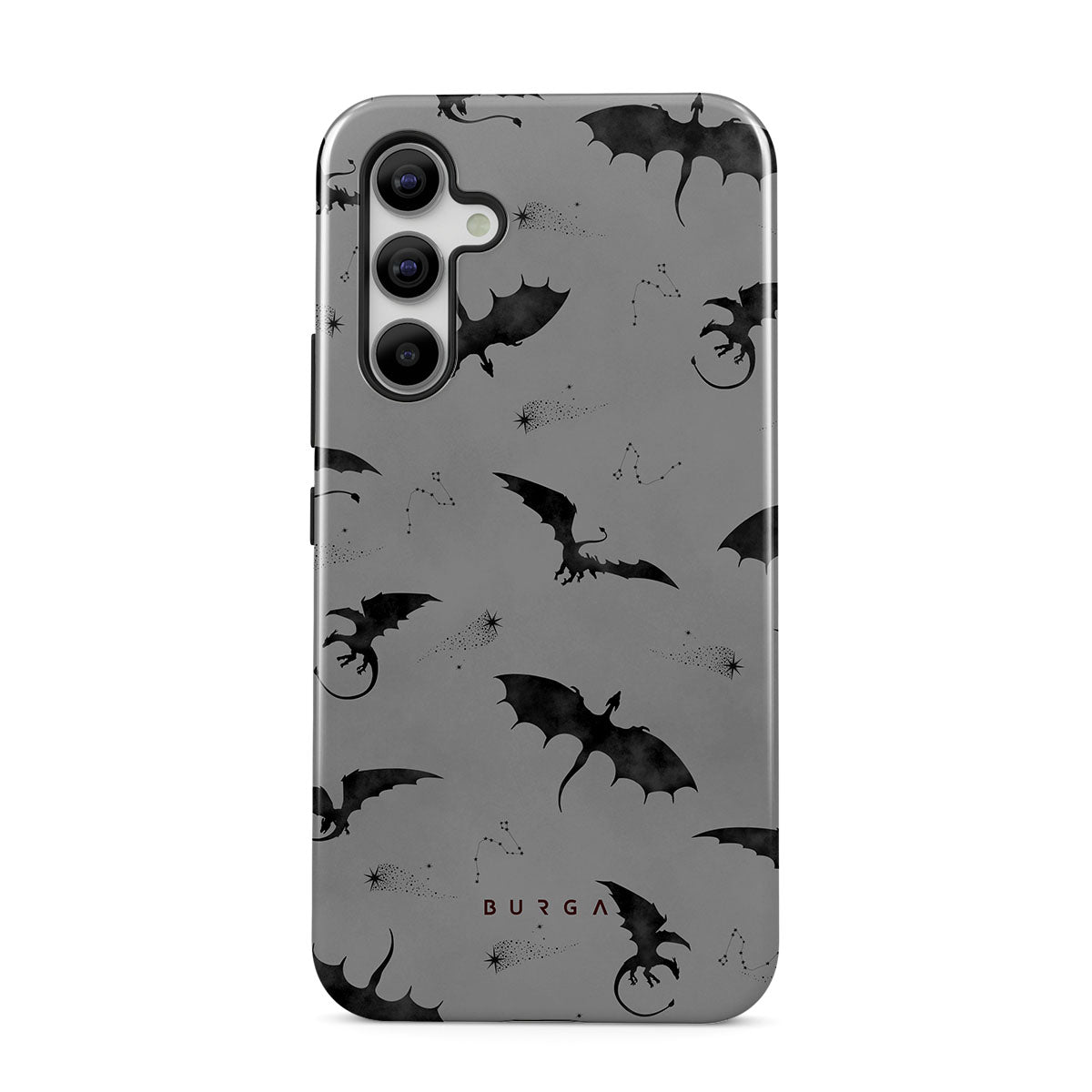 En este diseño: murciélagos, dragones, cielo gris, cielos nocturnos, criaturas siniestras.