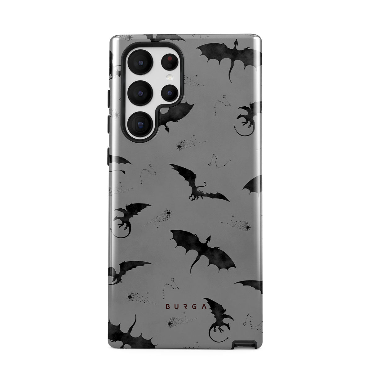 En este diseño: murciélagos, dragones, cielo gris, cielos nocturnos, criaturas siniestras.