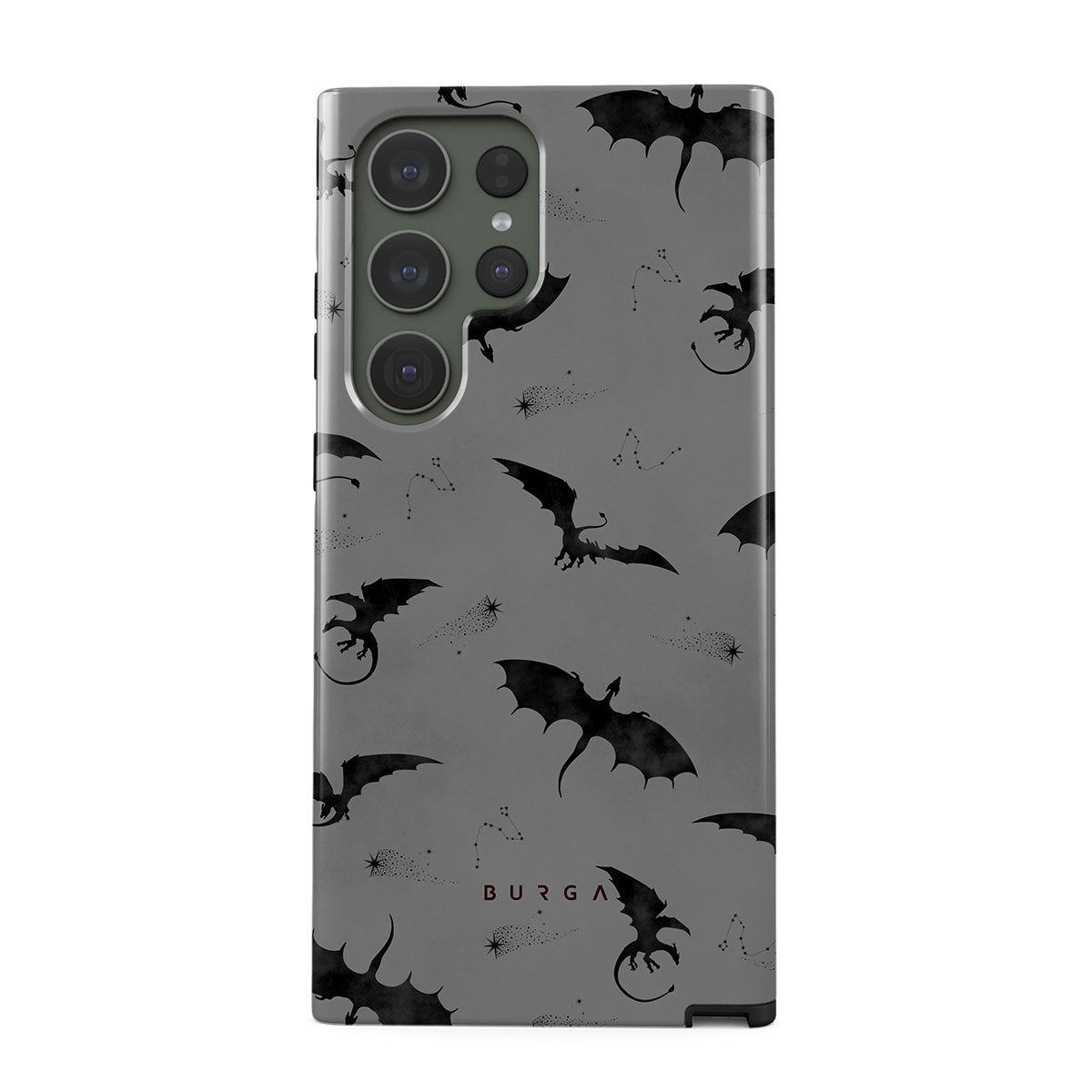 En este diseño: murciélagos, dragones, cielo gris, cielos nocturnos, criaturas siniestras.