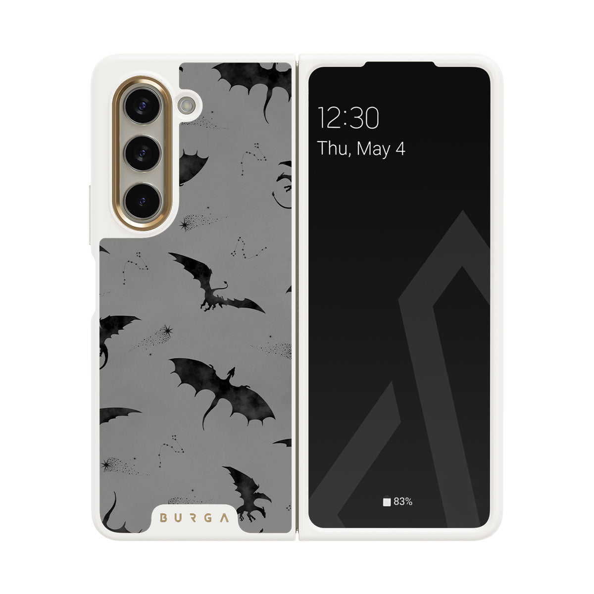 En este diseño: murciélagos, dragones, cielo gris, cielos nocturnos, criaturas siniestras.