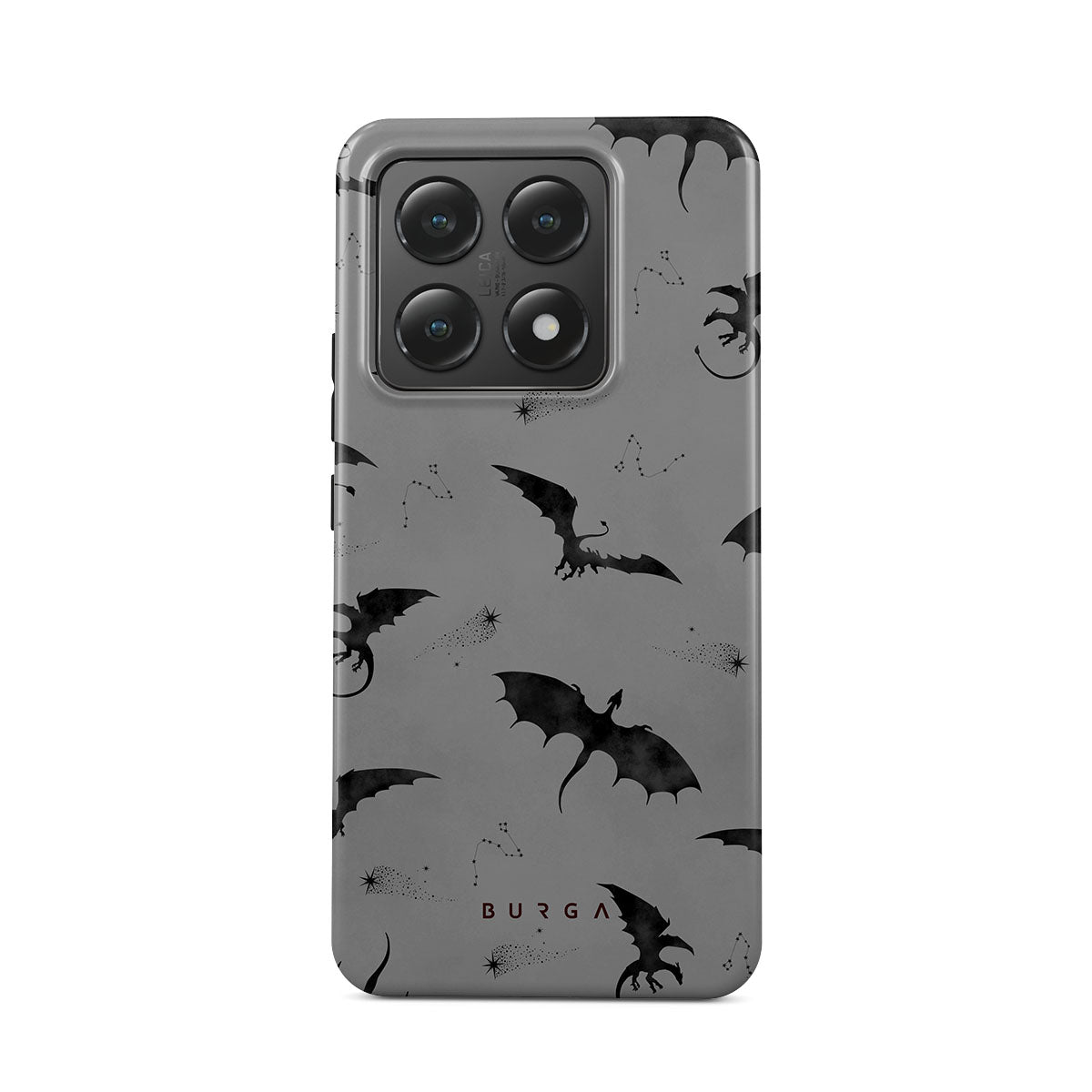 En este diseño: murciélagos, dragones, cielo gris, cielos nocturnos, criaturas siniestras.