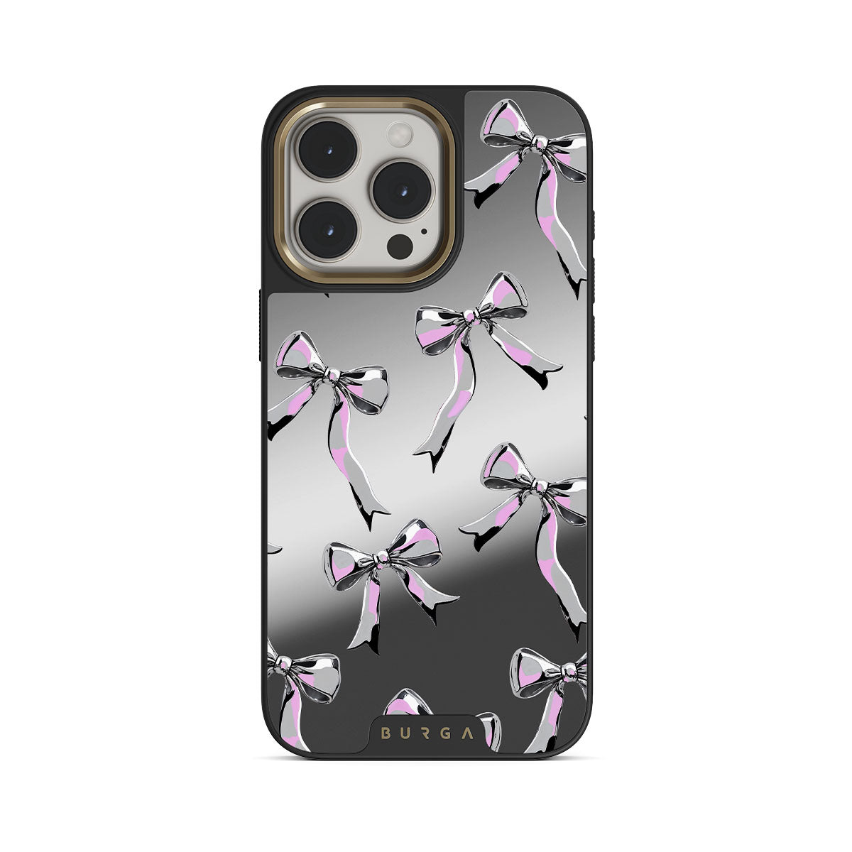 En este diseño: moños rosas, cintas, colores pastel, detalles femeninos, espejo.
