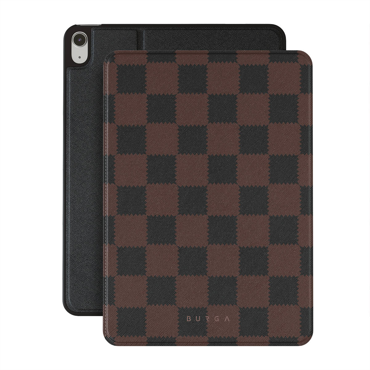 Características de este diseño: patrón a cuadros, tonos marrones y oscuros, geométrico