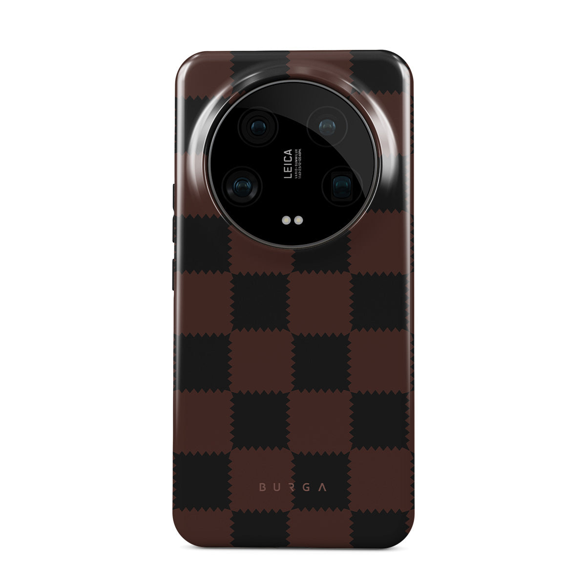 Características de este diseño: patrón a cuadros, tonos marrones y oscuros, geométrico