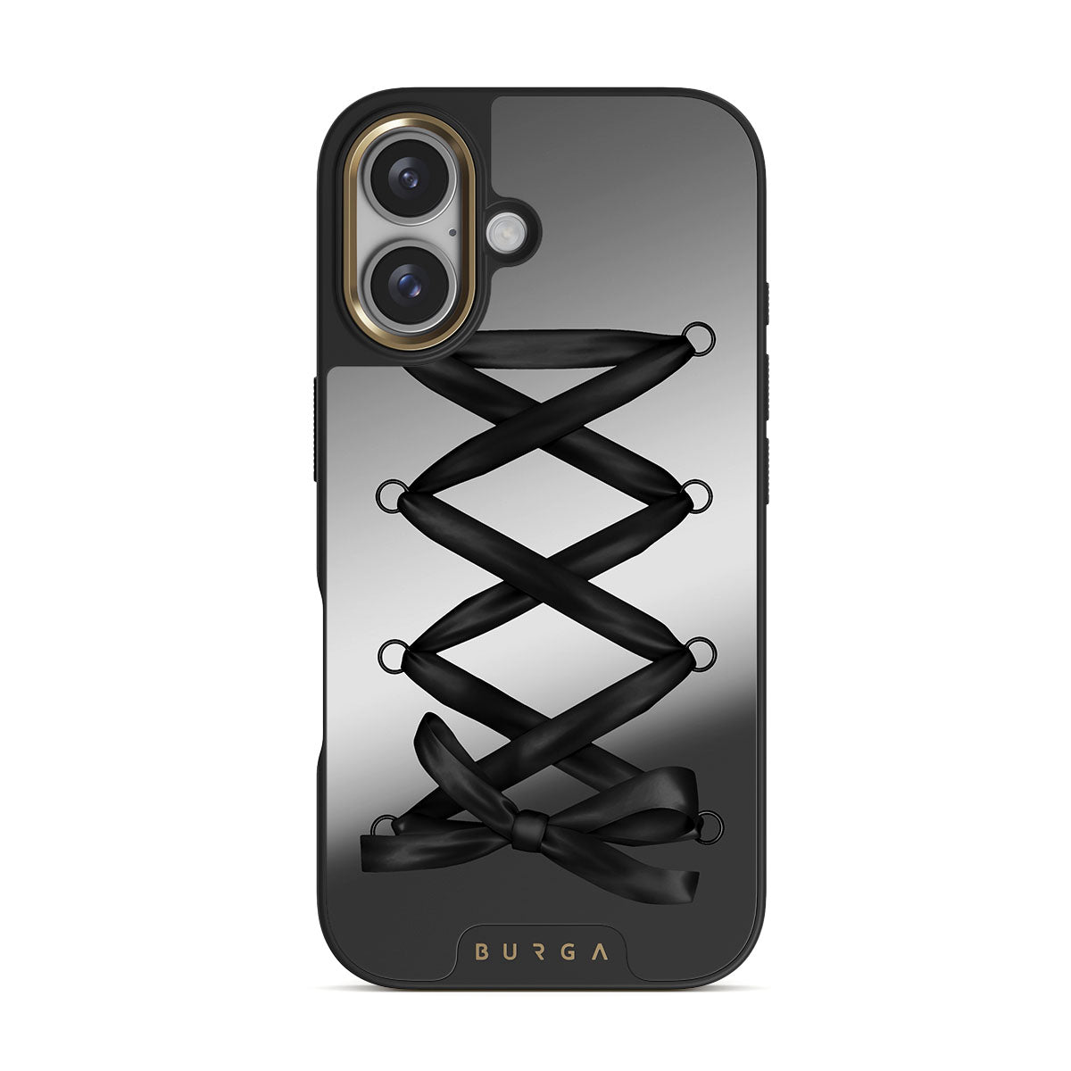En este diseño: lazo negro, patrón entrecruzado y acabado de espejo.