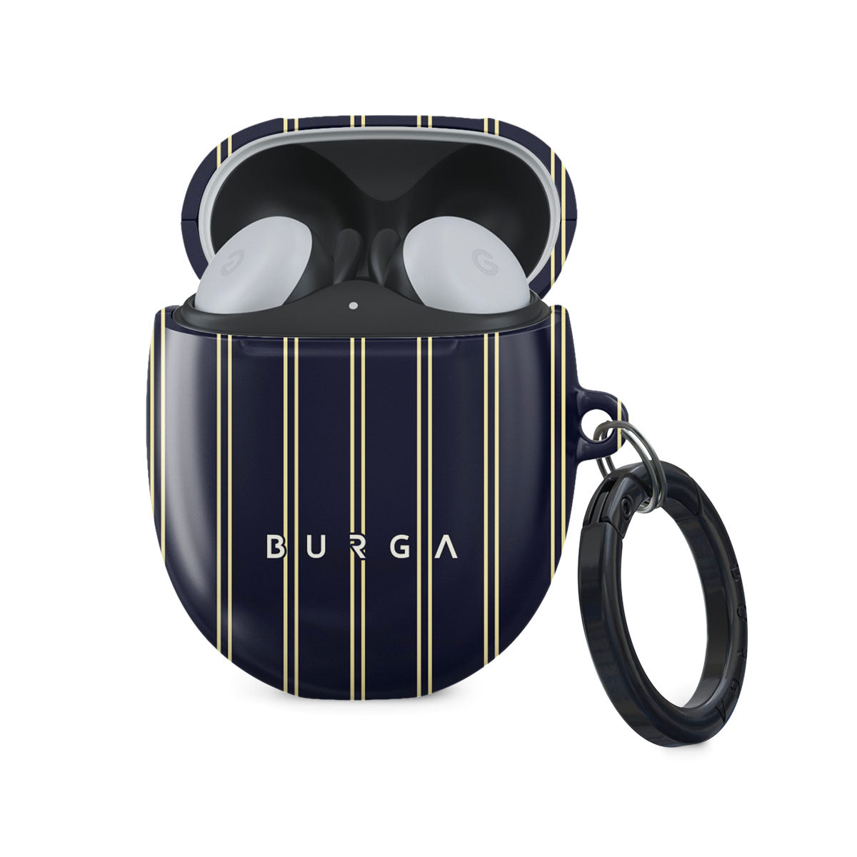 I was always loosing my earbuds but now with this case & keyring (and the finder tile I attached) I can always find them. It looks exactly like the picture, and I can still charge them through the case (and see the charge like that glow). Can't recommend highly enough. Just know that it ships from outside the US so will take a little time to get to you, but tracking numbers and updates were timely and accurate along the way.