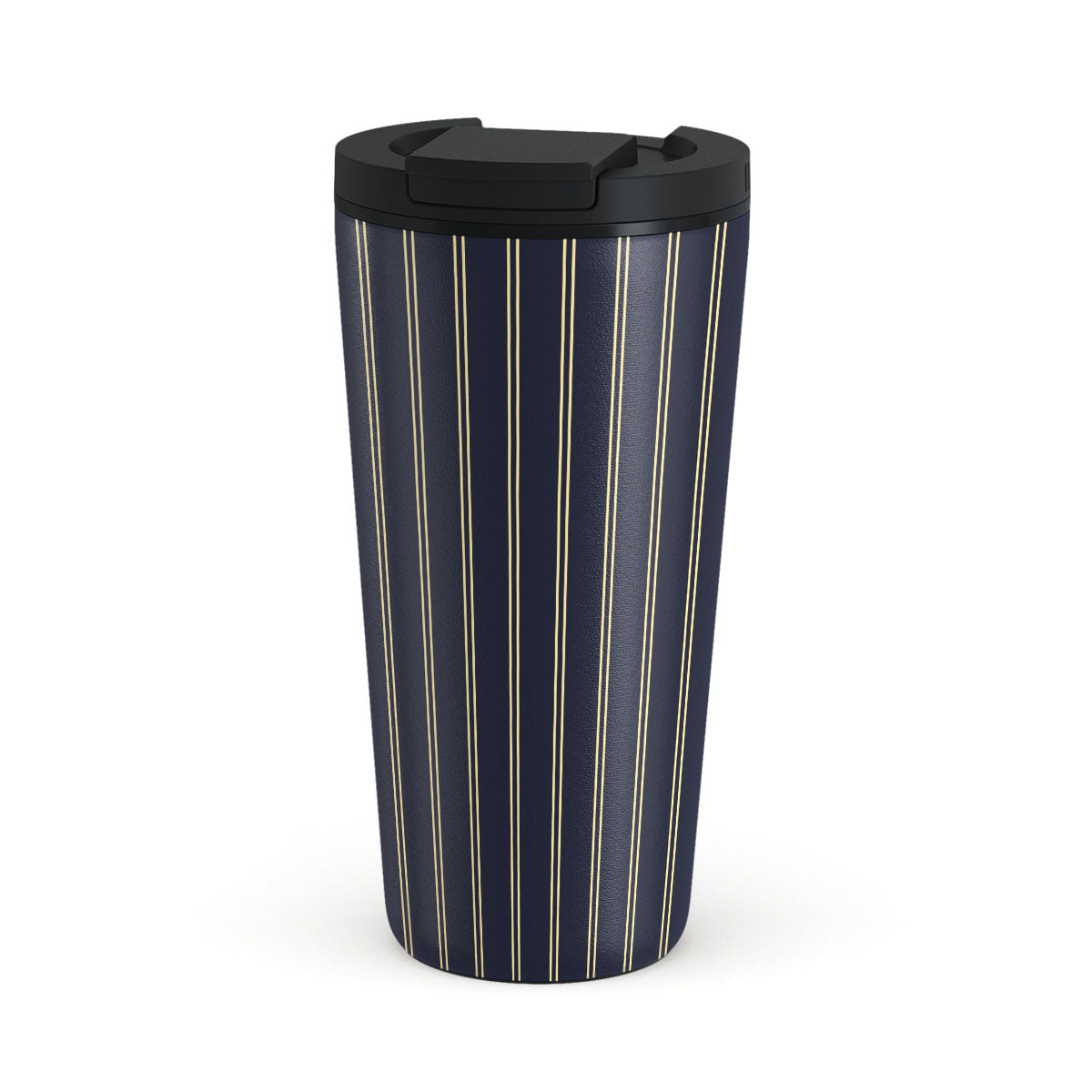 Características de este diseño: rayas azul marino, líneas doradas, líneas verticales, patrón geométrico