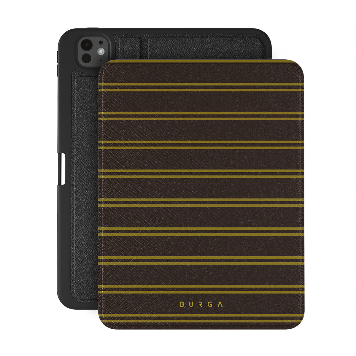 Características de este diseño: rayas marrones, rayas doradas, patrón clásico, patrón geométrico