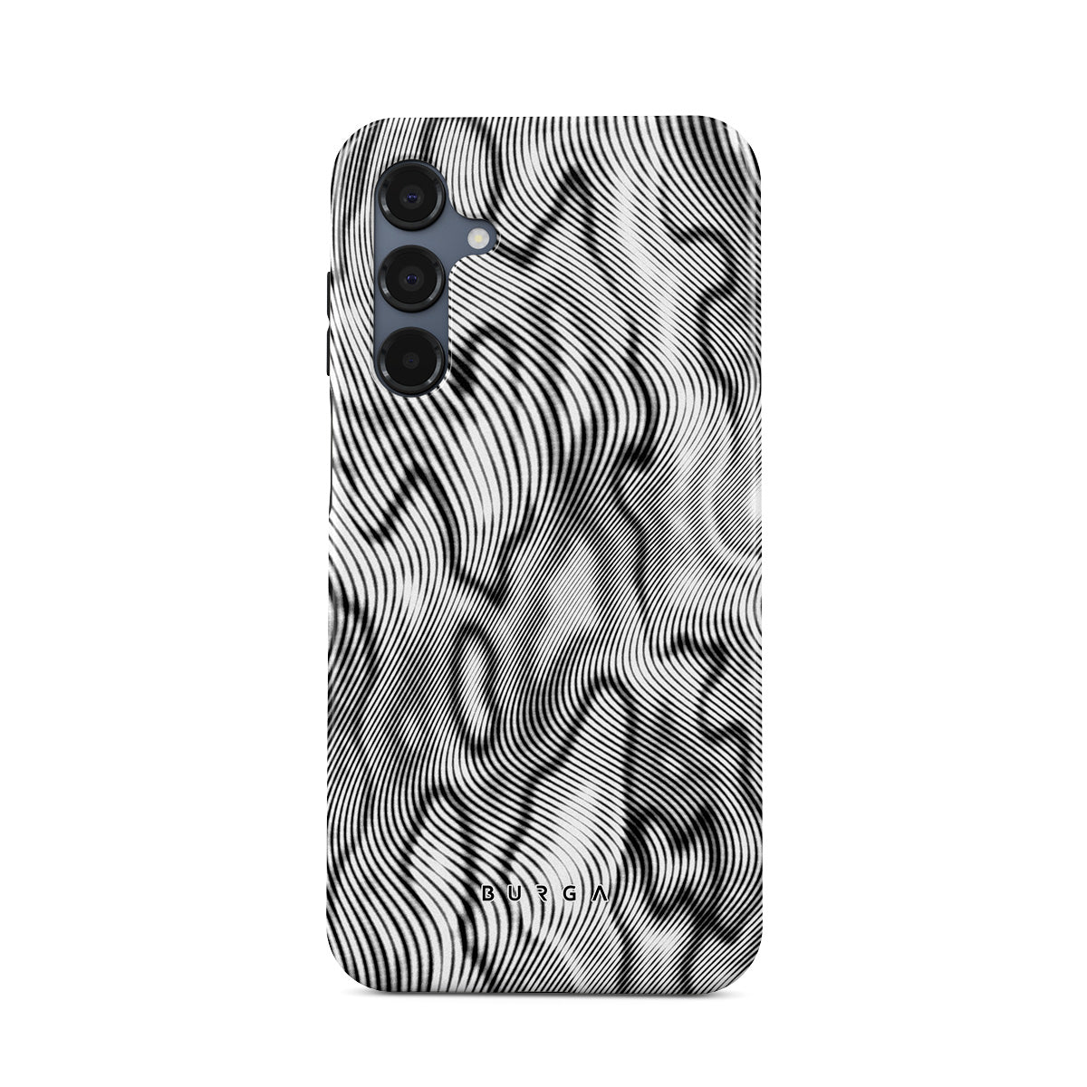Características de este diseño: líneas onduladas, blanco y negro, abstracto, patrones fluidos