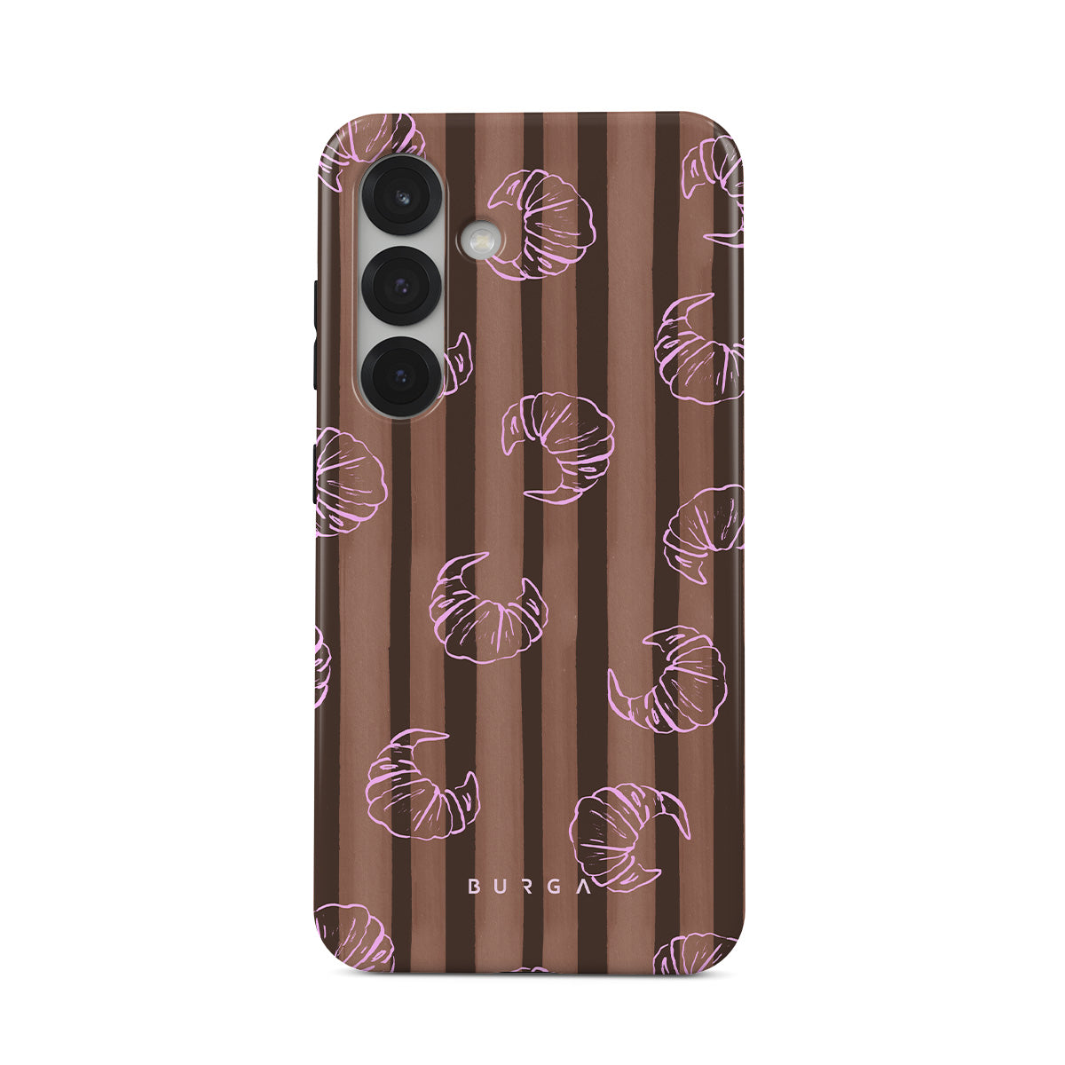En este diseño: rayas verticales, rayas cafés y beige, croissants