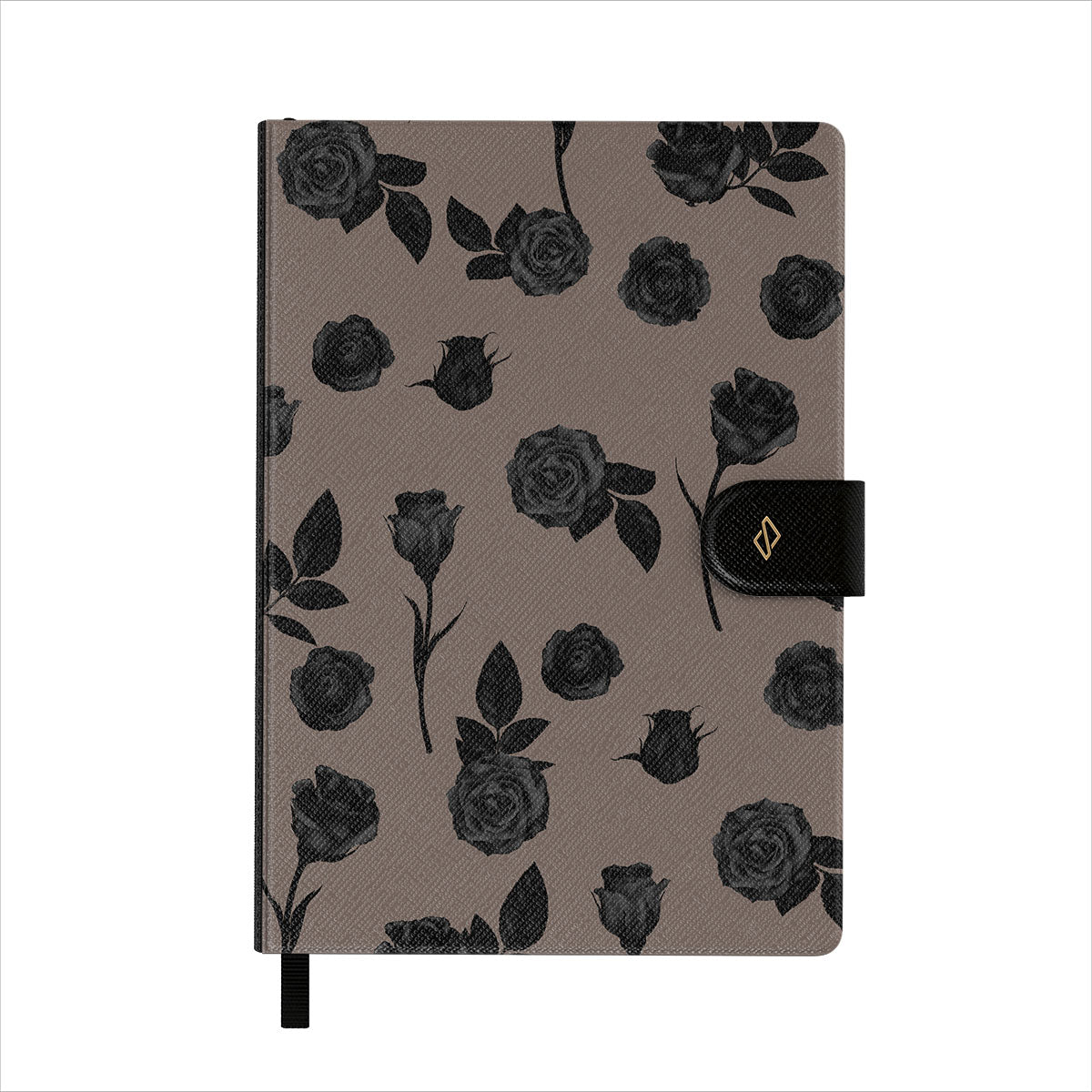 En este diseño: rosas negras, tonos terrosos, detalles florales y flores oscuras.