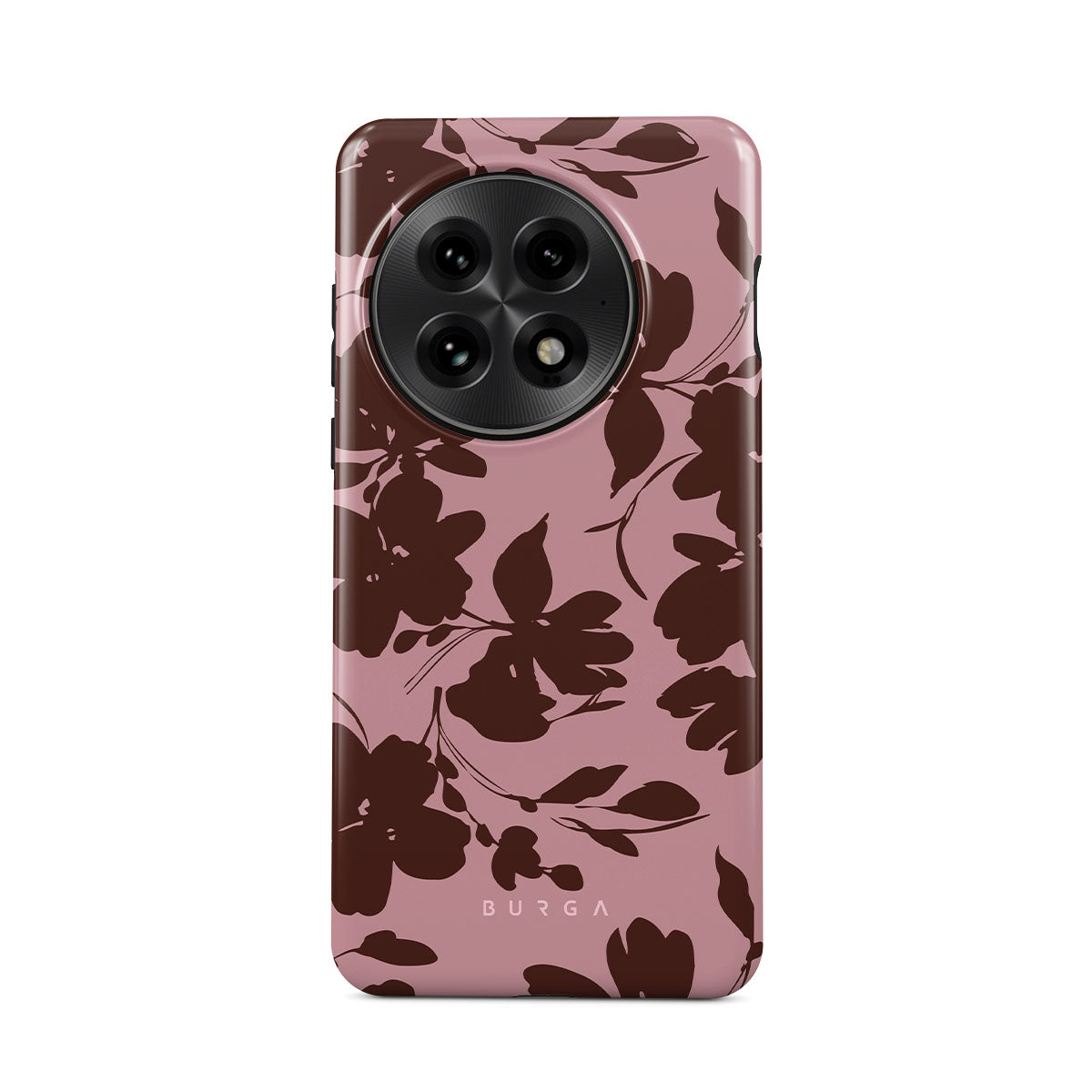 En este diseño: flores marrones abstractas, fondo rosa.