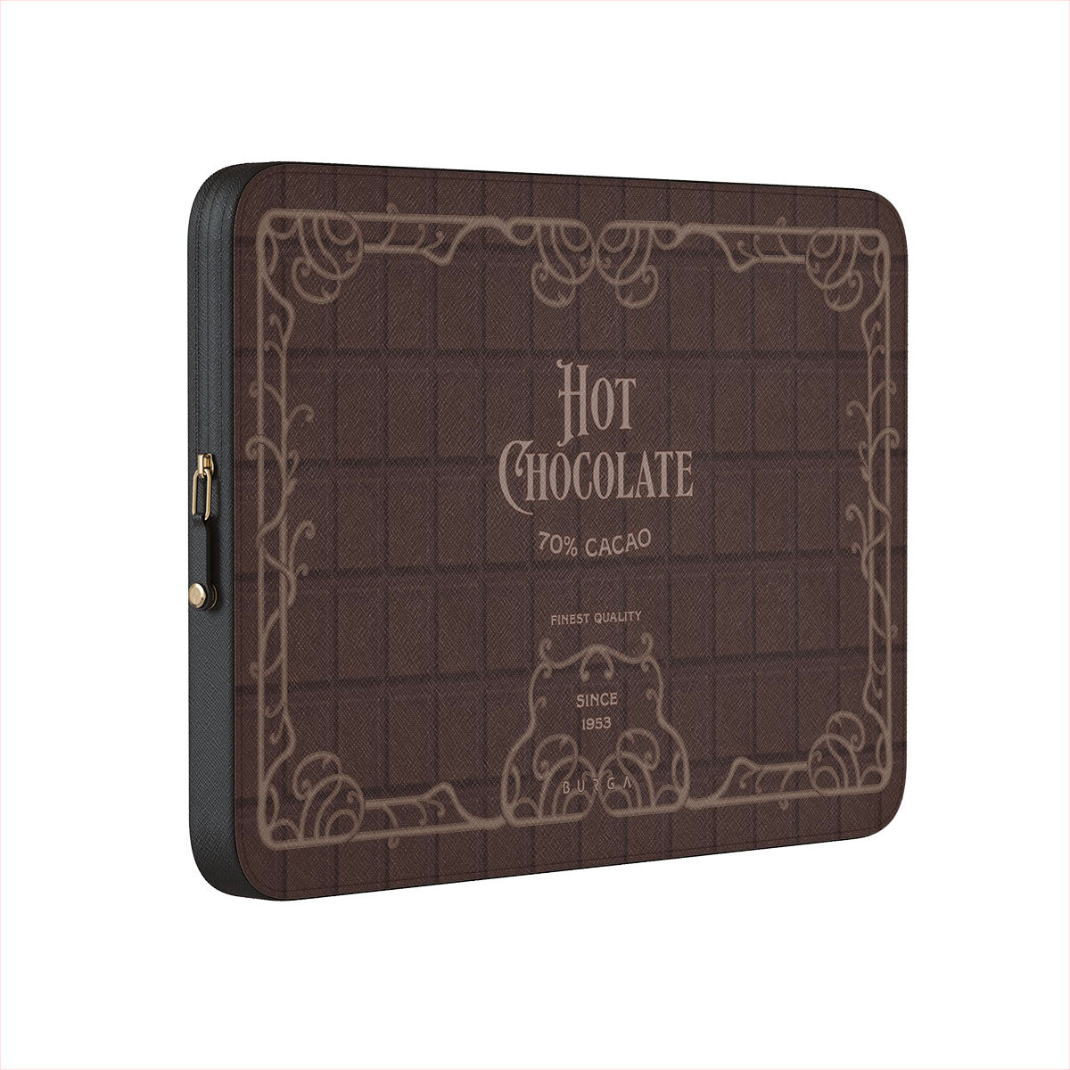 En este diseño: etiqueta de chocolate caliente, diseño de chocolate marrón, estilo retro de empaquetado